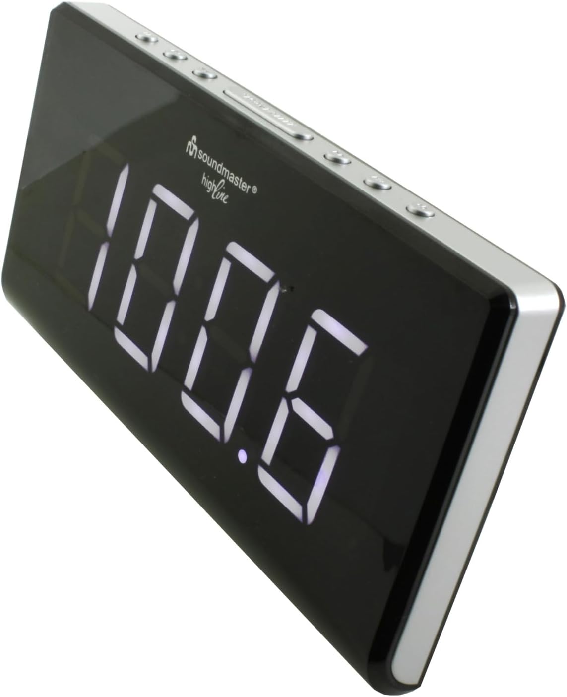 Soundmaster UR8400 Jumbo-LED-Alarm UKW-PLL Uhrenradio Radiowecker mit 2 Weckzeiten und dimmbaren Dis