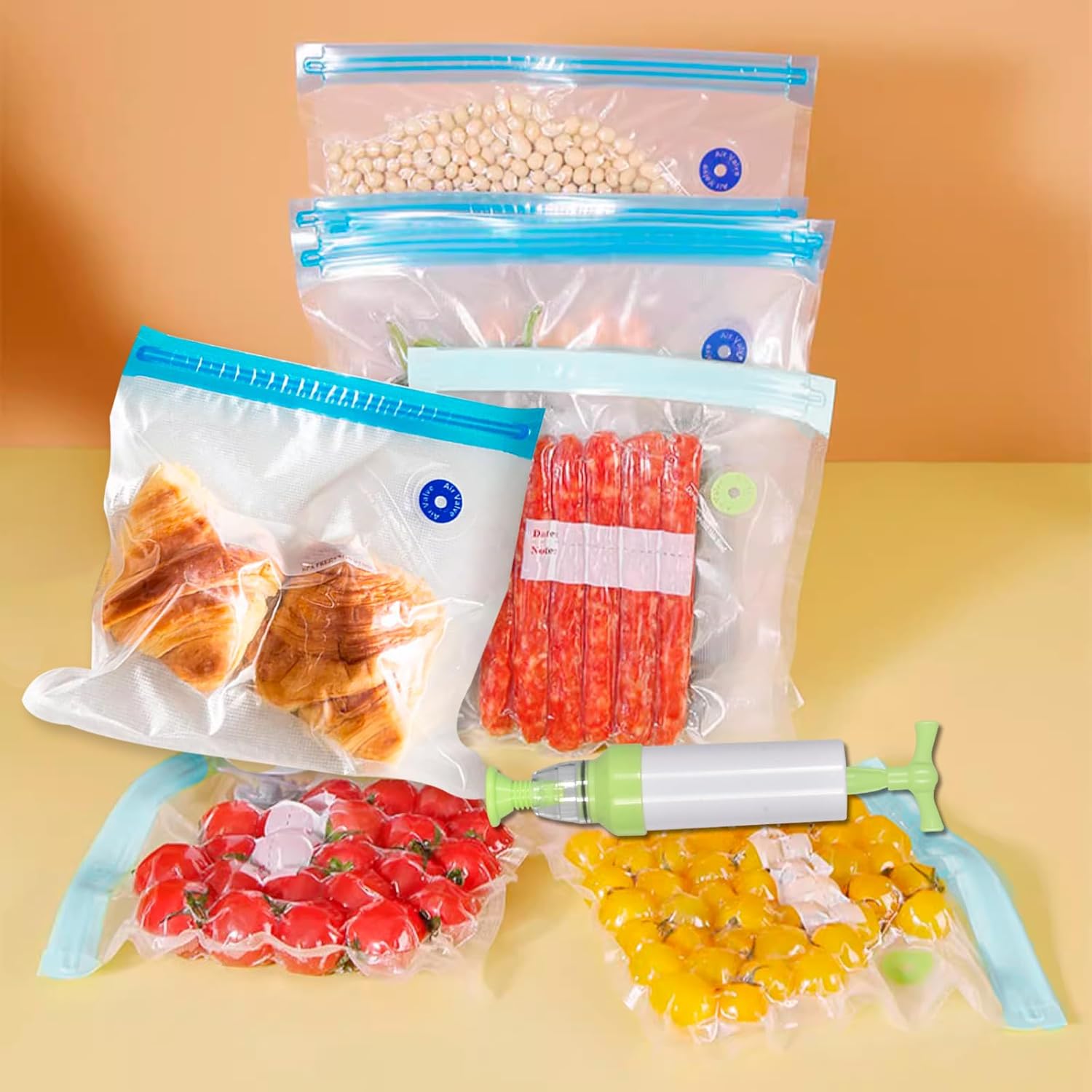 - 【Erfüllt alle Ihre Anforderungen】Das komplette Zubehör umfasst 3 Grössen von Sous-Vide-Beuteln (5* klein: 26*28cm, 5* mittel: 26*34cm, 5* gross: 30*34cm), 4 Verschlussklammern, 2 Metallklammern, 1 filterbare Handvakuumpumpe. Erfüllt alle Ihre