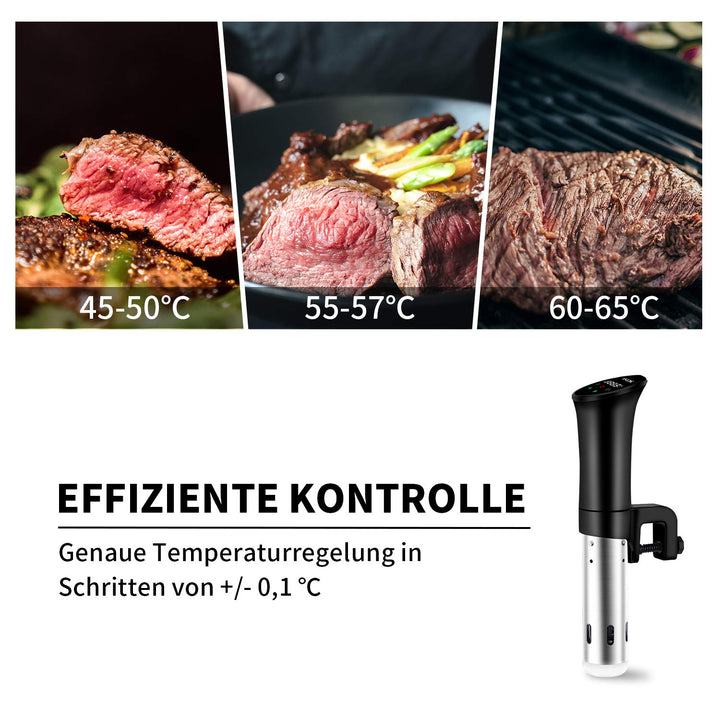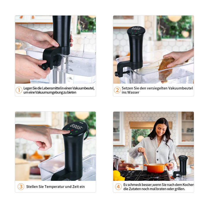 - Sous vide Kuchbuch:Sie können zu Hause hochwertige Gerichte in Restaurantqualität zubereiten und aus einem Küchenchef einen Gourmetkoch machen. Geeignet für die meisten Behälter und Lebensmittel wie Gemüse, Fleisch, Eier usw. Es kommt auch mit einem Sous vide Kochbuch, Einfache und schmackhafte Rezepte zum Schongaren im Vakuum inkl