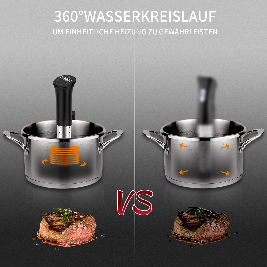 - Präzisionstemperatur und Timer:Leistung 770W, 3D leistungsstarke leise Wasserzirkulation, konstante Wassertemperatur, gleichmässige Erwärmung. Vermeiden Sie effektiv das Fehlen einer lokalen Hochtemperaturerwärmung bei herkömmlichen Kochmethoden und eine Beschädigung der Lebensmittelfasern durch Hochtemperatur und pflegen Sie die natürliche Ernährung der Lebensmittel