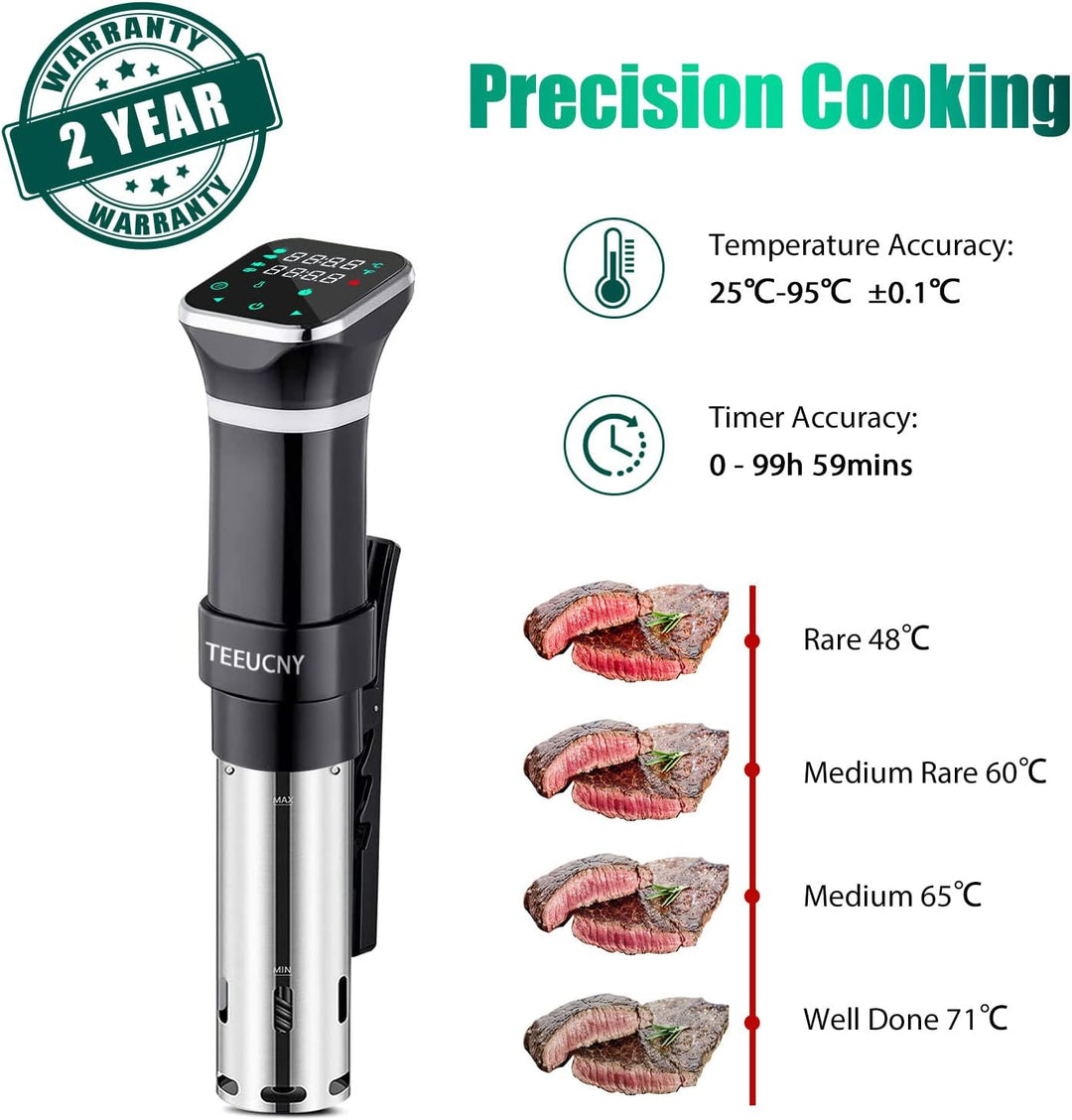 - [PROFESSIONELLES PERFEKTES KOCHEN] Erstellen Sie mit der Kochtechnik leckere Gerichte wie ein Profi-Koch. Restaurantqualität zu Hause auch für Kochanfänger! Es kostet weniger und bringt Ihnen saftiges und zartes Fleisch genau wie sie auch im Restaurant hätten. TEEUCNY sous vide garer bringt professionelle Kochtechniken zu Ihnen nach Hause und macht es einfach, eine breite Palette von Fleisch, Meeresfrüchte und Gemüsesalat Zutaten für Sie und Ihre Familie zu kochen, um eine gesunde.