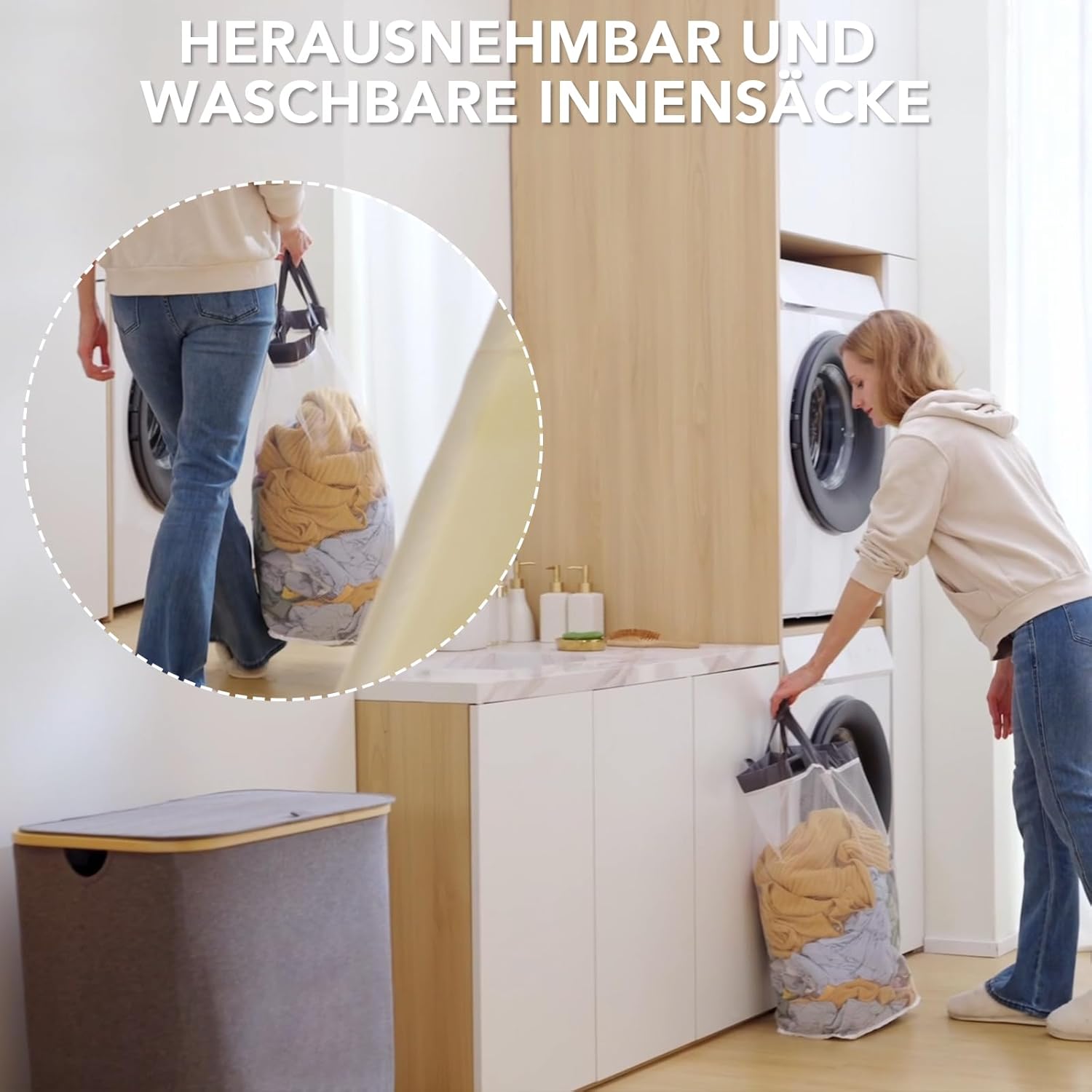 - 𝙐𝙋𝙂𝙍𝘼𝘿𝙀 𝘿𝙀𝙎𝙄𝙂𝙉: Der Wäschesack im Wäschekorb wird mit Knopf befestigt, nicht mit Klettverschlüssen, damit er nicht herunterfällt, wenn Sie Kleidung lässig hineinwerfen oder die Kleidung zu viel ist. Dank des