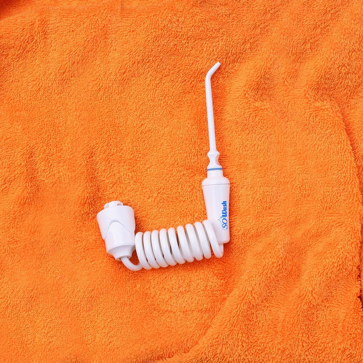 - Die Sowash-Düsen sind alle austauschbar. Es ist möglichauf den gleichen Griffdie Düse der Mundduschedie Impulsduschedie Kugelbrausedie Wasserstrahl-Zahnbürste und die Wasser-Interdentalbürste zu setzen.