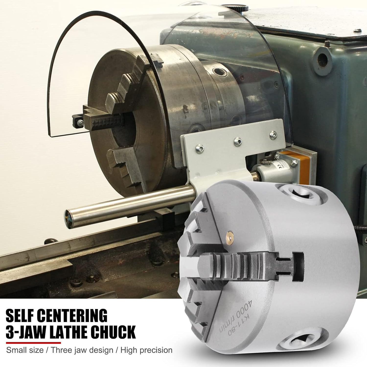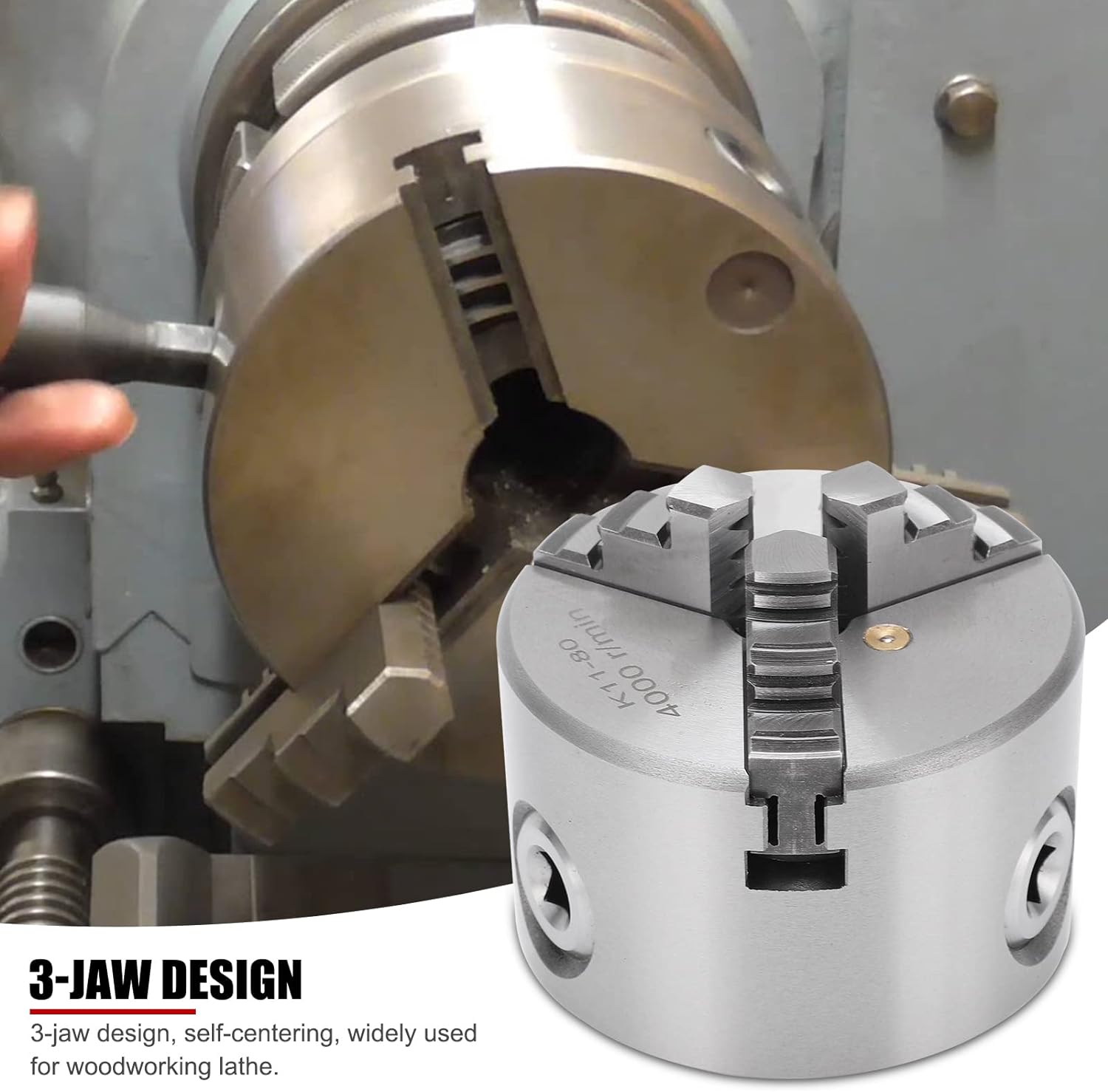 - [Ideales Werkzeug für Holzbearbeitungsdrehmaschinen] Das Drei-Backen-Design des Drei-Backen-Spannfutters k11-80 kann automatisch zentriert werden. Es ist weit verbreitet als ideales Werkzeug für Holzdrehmaschinen und Holzbearbeitungsdrehmaschinen.