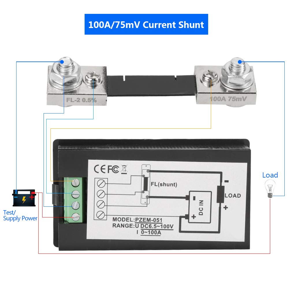 - 【Shunt-Funktion】 Das Spannungs- und Strommessgerät der digitalen Flüssigkristallanzeige verfügt über einen Power-Shunt im Gehäuse. Der Modus verfügt über einen 50-A-Stromshunt und einen 100-A-Stromshunt, was praktisch ist und Zeit spart.