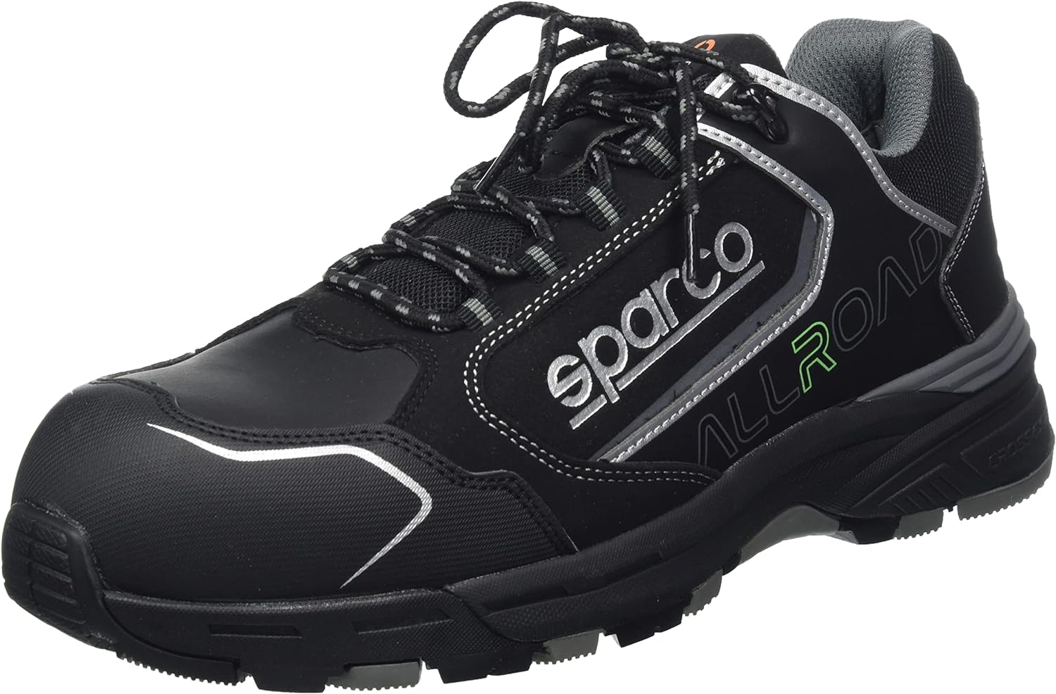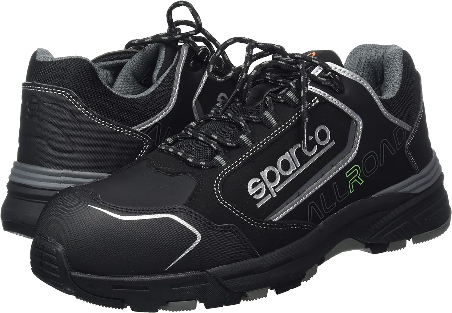 PRODUKTBESCHREIBUNGEN S3 SRC niedriger Sicherheitsschuh Modell ALLROAD ; aus wasserabweisender Mikrofaser und robustem und atmungsaktivem Nylon. Phylon-Sohle mit CROSSGRIP-Gummiunterseite, mit idealem Profilmuster für maximalen Halt und Stabilisierung auf kiesigen, schlammigen und schneebedeckten Oberflächen. Zehenschutzkappe aus Verbundwerkstoff, antistatische Einlegesohle, Memory-Schaumstoff, atmungsaktiv und ideal für den längeren Gebrauch. Leicht, langlebig, bequem und widerstandsfähig, ideal für alle Arten von Anwendungen, sowohl INDOOR als auch OUTDOOR.