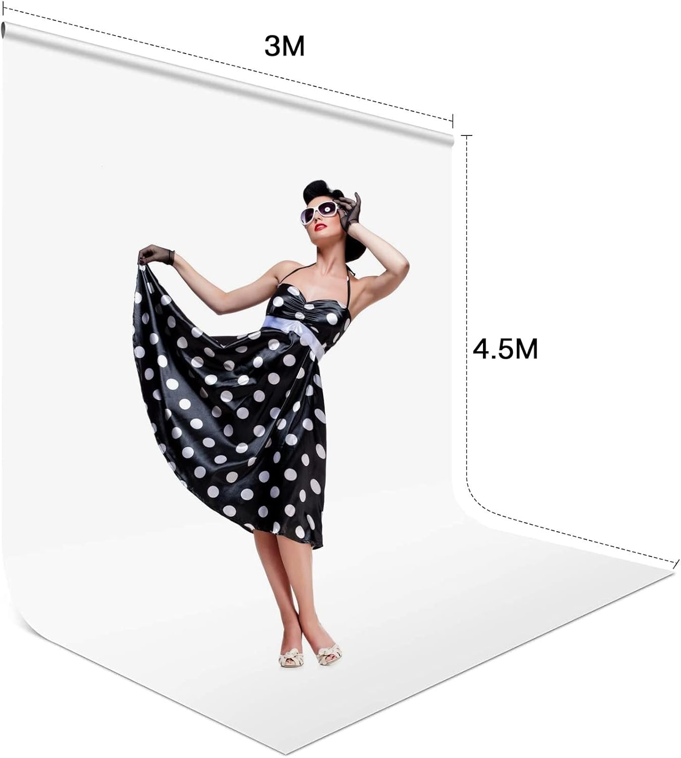 - Das Set Beinhaltet: 3 x 4.5 m Hintergründe (weiss) + 4 Hintergrundclips + 1 Tasche für einfache Verwendung und Transport (Bitte beachten Sie: Dieses Paket enthält keinen Hintergrundständer.)