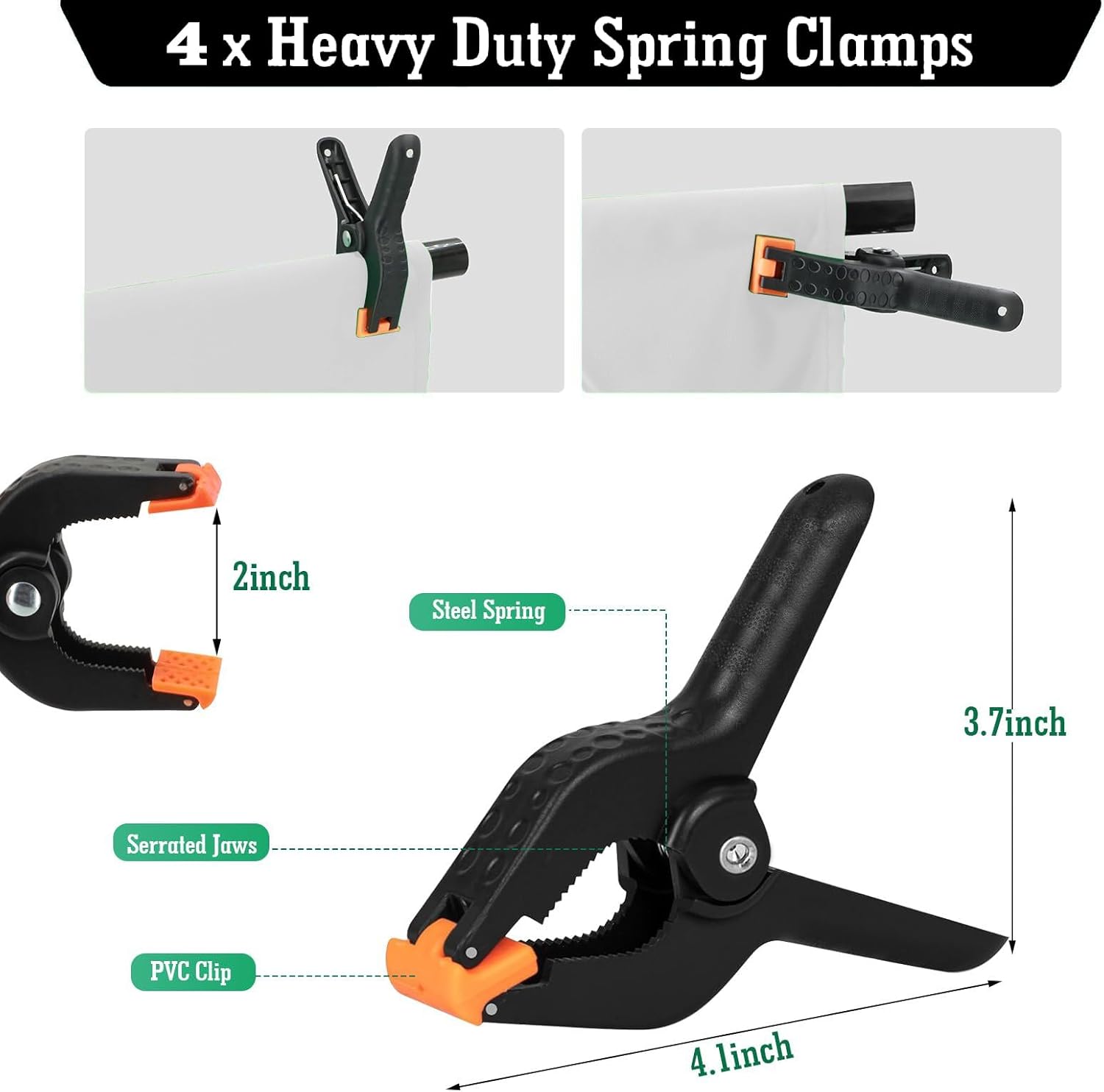 - 4 Langlebige Federklammern : wird mit 4 hochfesten Klammern mit einer maximalen Öffnung von 6 cm geliefert. Bietet einen sofortigen und bequemen Halt, um das Hintergrundtuch am Ständer zu befestigen, diese Clips sind robust und langlebig.Crossbar Hole Design : Es Querstangenlöcher für Querstangen, die zum einfachen Aufhängen an der Querstange aufgehängt oder aufgehängt werden können