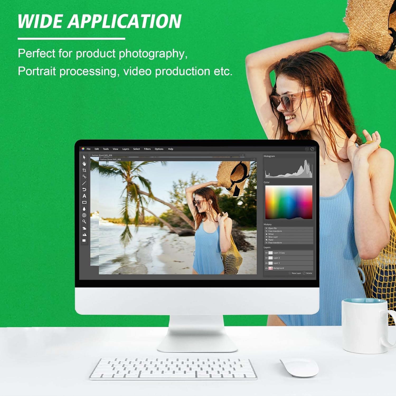 - Breite Anwendungen : Das Hintergrundtuch eignet sich für professionelle Studioaufnahmen und bietet einen hochgesättigten Grünton, ideal für Chroma-Keying oder das Erstellen von Greenscreen-Effekten, ideal für Porträts, Lehr- oder Weltraumvideos,