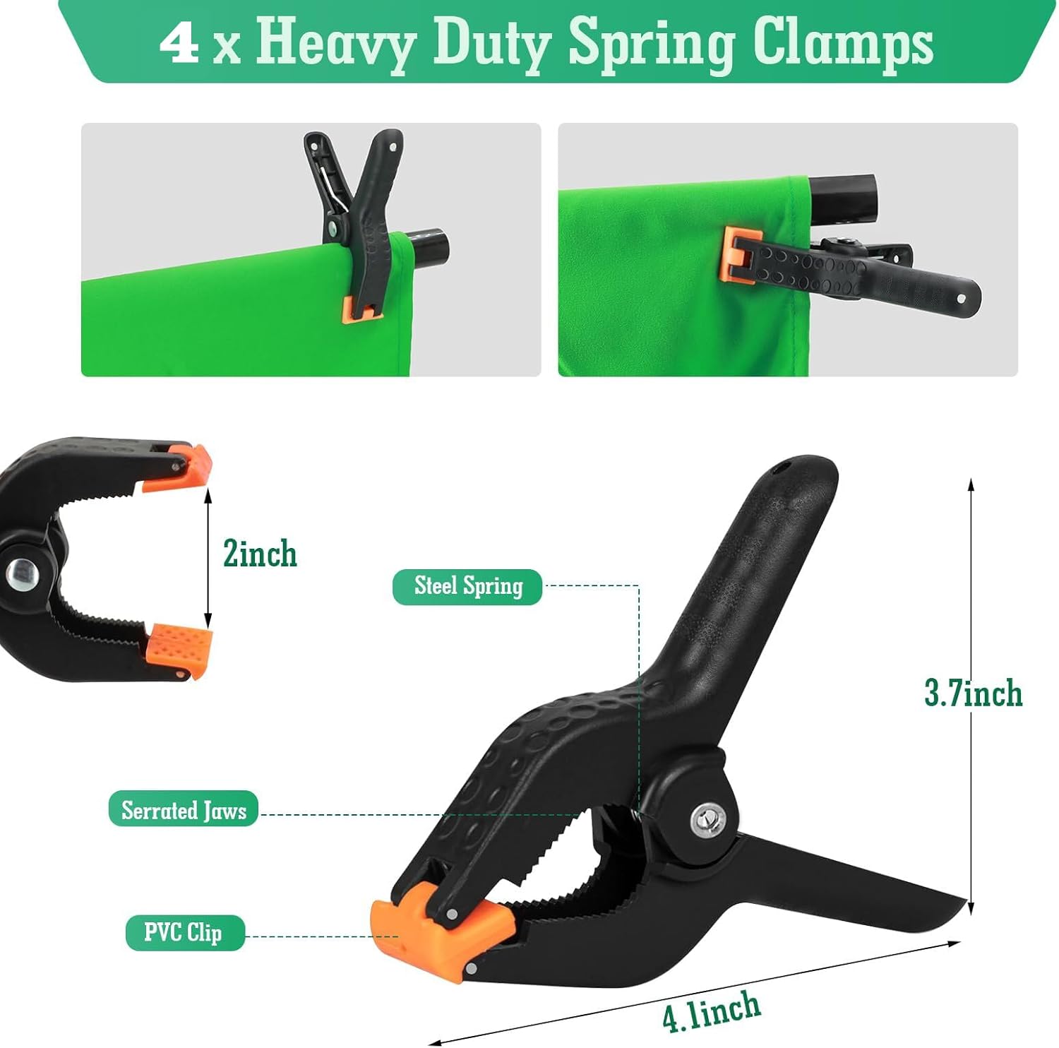- 4 Langlebige Federklammern : wird mit 4 hochfesten Klammern mit einer maximalen Öffnung von 6 cm geliefert. Bietet einen sofortigen und bequemen Halt, um das Hintergrundtuch am Ständer zu befestigen, diese Clips sind robust und langlebig.Crossbar Hole