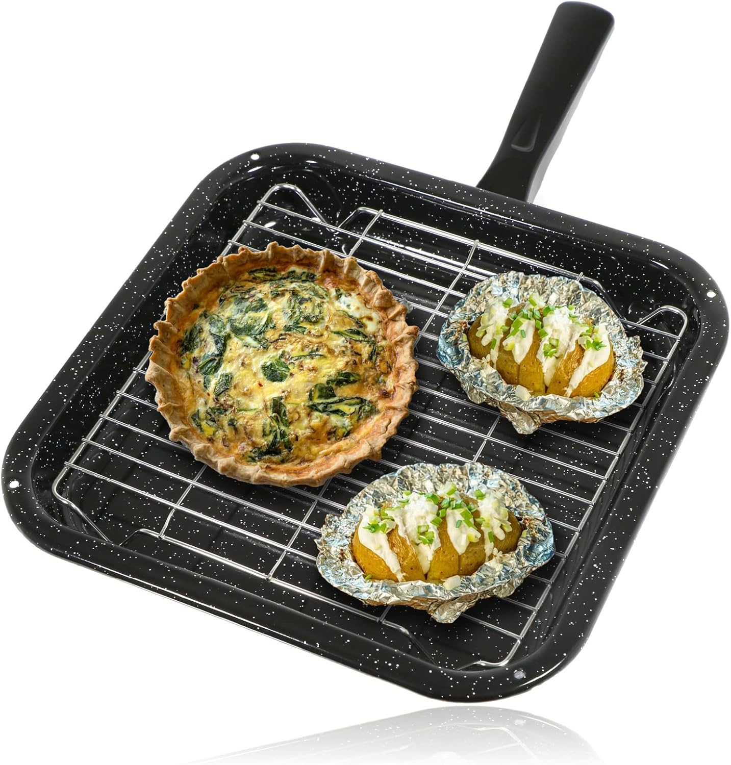 - Kleine emaillierte Ersatz-Grillpfanne mit abnehmbarem Griff, hergestellt für Spare2go zur Anpassung von allen Neff-Backofenmodellen.