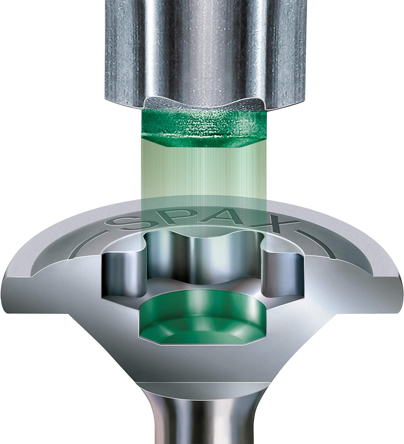 - Höhere Kopfdurchzugskräfte durch Tellerkopf. Optimale Kraftübertragung und sauberer Passsitz mit SPAX Bit T-STAR plus T30 Bit mit Führungszapfen
