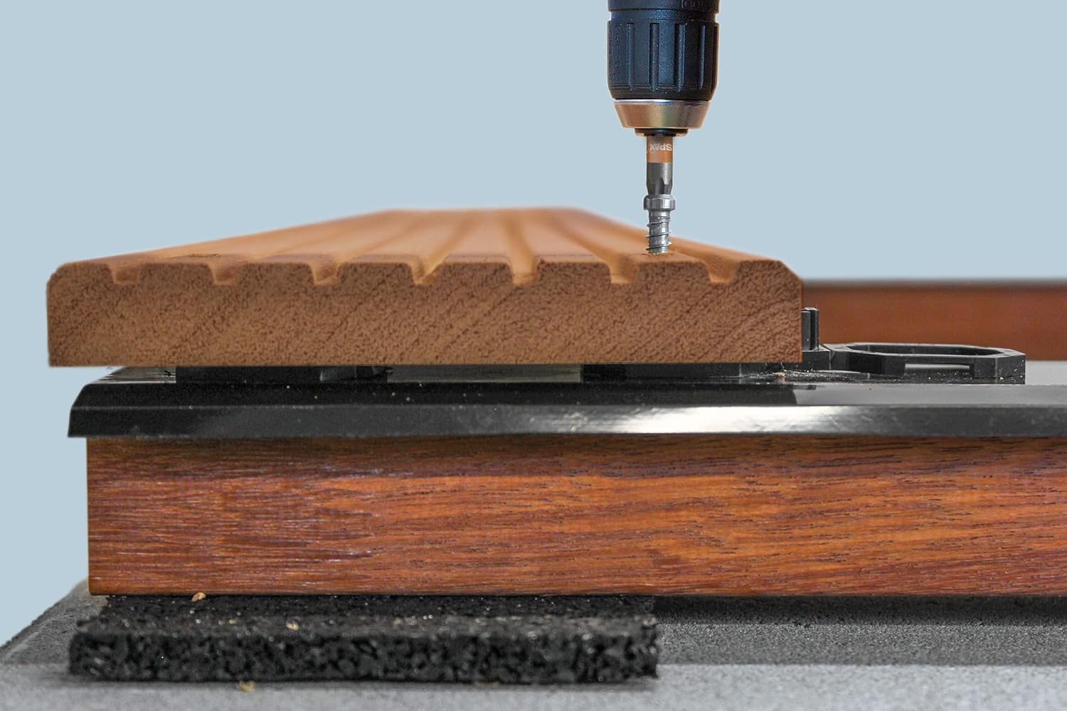 - Verbindungsstabilität: das Fixiergewinde gleicht die Bewegungen der Holzdielen aus. Somit wird das Knarren von Holz, das bei Temperaturschwankungen „arbeitet“, zuverlässig verhindert.