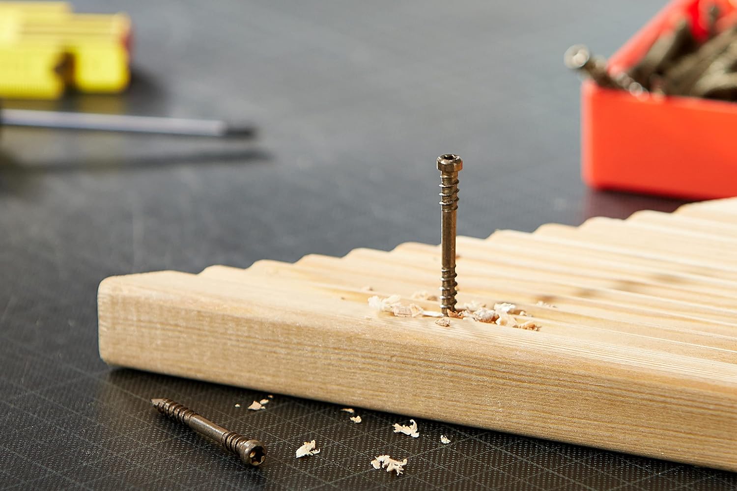 - Kleiner Zylinderkopf: Leichtes Versenken mit verringerter Spaltwirkung. Fixiergewinde zur festen und dauerhaften Verbindung zweier Hölzer, vermindert Knarrgeräusche. Optimale Kraftübertragung und sauberer Passsitz mit SPAX Bit T-STAR plus T25