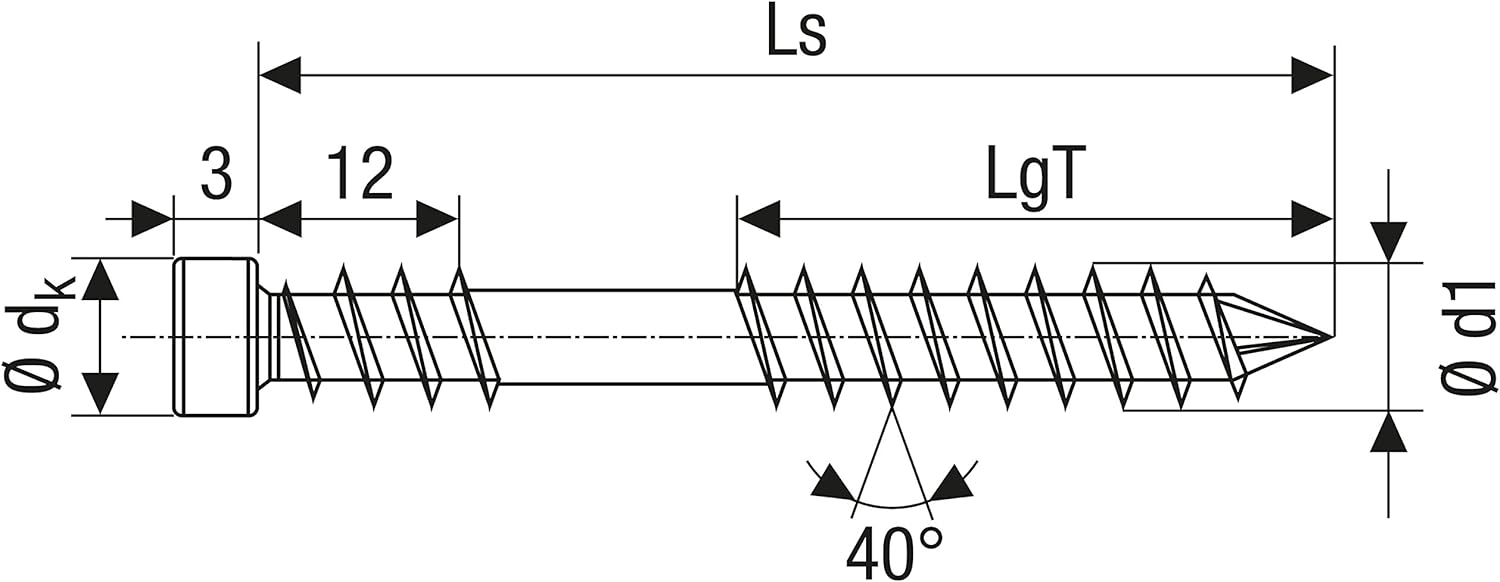 - Lieferumfang: 1 SPAX Box, 100 Stück Terrassenschraube, T-STAR plus, Zylinderkopf, Fixiergewinde, CUT-Spitze, Edelstahl rostfrei A4, Materialgüte: 1.4578, Gewindedurchmesser (Ød1)= 6,0 mm x Gesamtlänge (Ls) = 60 mm, Teilgewindelänge (LgT) = 28mm,