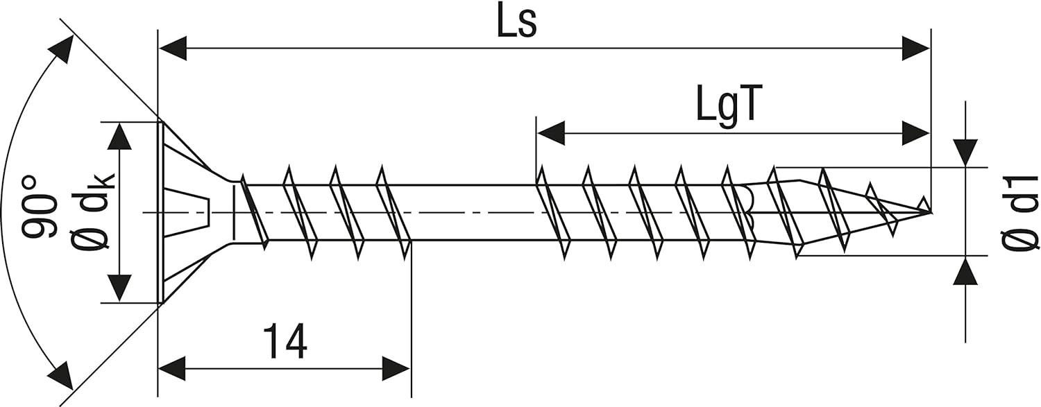 • Lieferumfang: 1 SPAX Box, 500 Stück Verlegeschraube, T-STAR plus, Senkkopf, Fixiergewinde, 4CUT, WIROX A3J, Gewindedurchmesser (Ød1)= 4,5 mm x Gesamtlänge (Ls) = 70 mm, Teilgewindelänge (LgT) = 31,5 mm, Kopfdurchmesser (Ødk) = 8,8mm, Bit nicht
