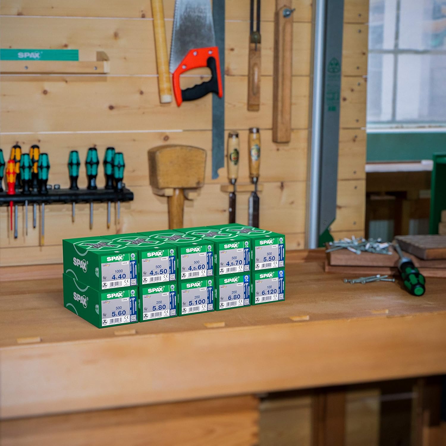 - Ermüdungsfeies Arbeiten: Als MULTI-Kopf ausgeprägter Senkkopf für bündiges Versenken und komfortables Verarbeiten, fräst im Holz, bremst auf Metall. Optimale Kraftübertragung und sauberer Passsitz auch beim Verarbeiten über Kopf mit SPAX Bit
