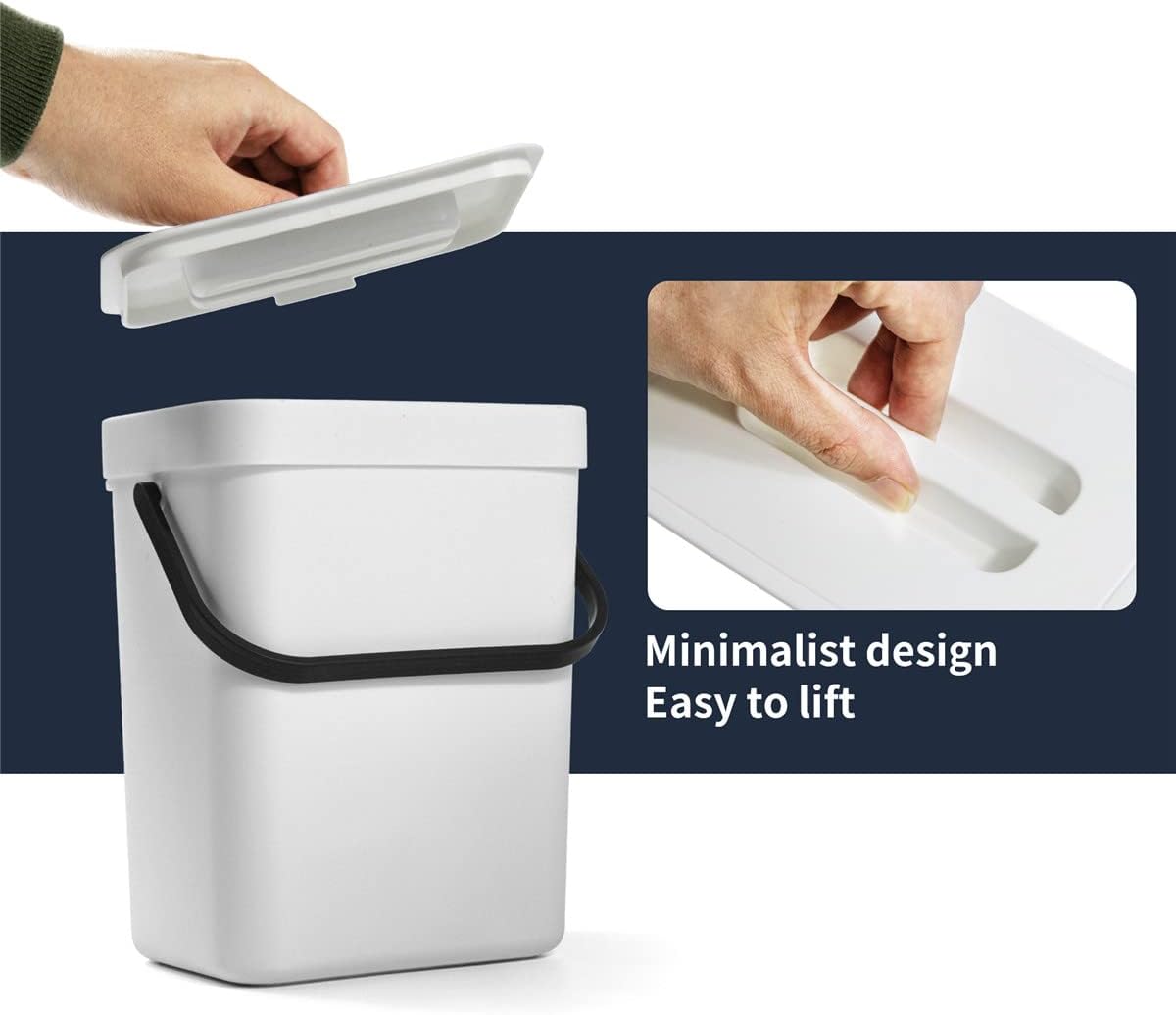 - 【2 Komposteimer mit Deckel im Set】Komposteimer Küche 5L(16,9 x 12,4 x 24,5 cm) + Tischmülleimer mit Deckel 3L(13,8*10*20,5cm).Der Mini-Mülleimer passt durch das stilvolle und schlichte Design perfect für den täglichen Gebrauch auf der
