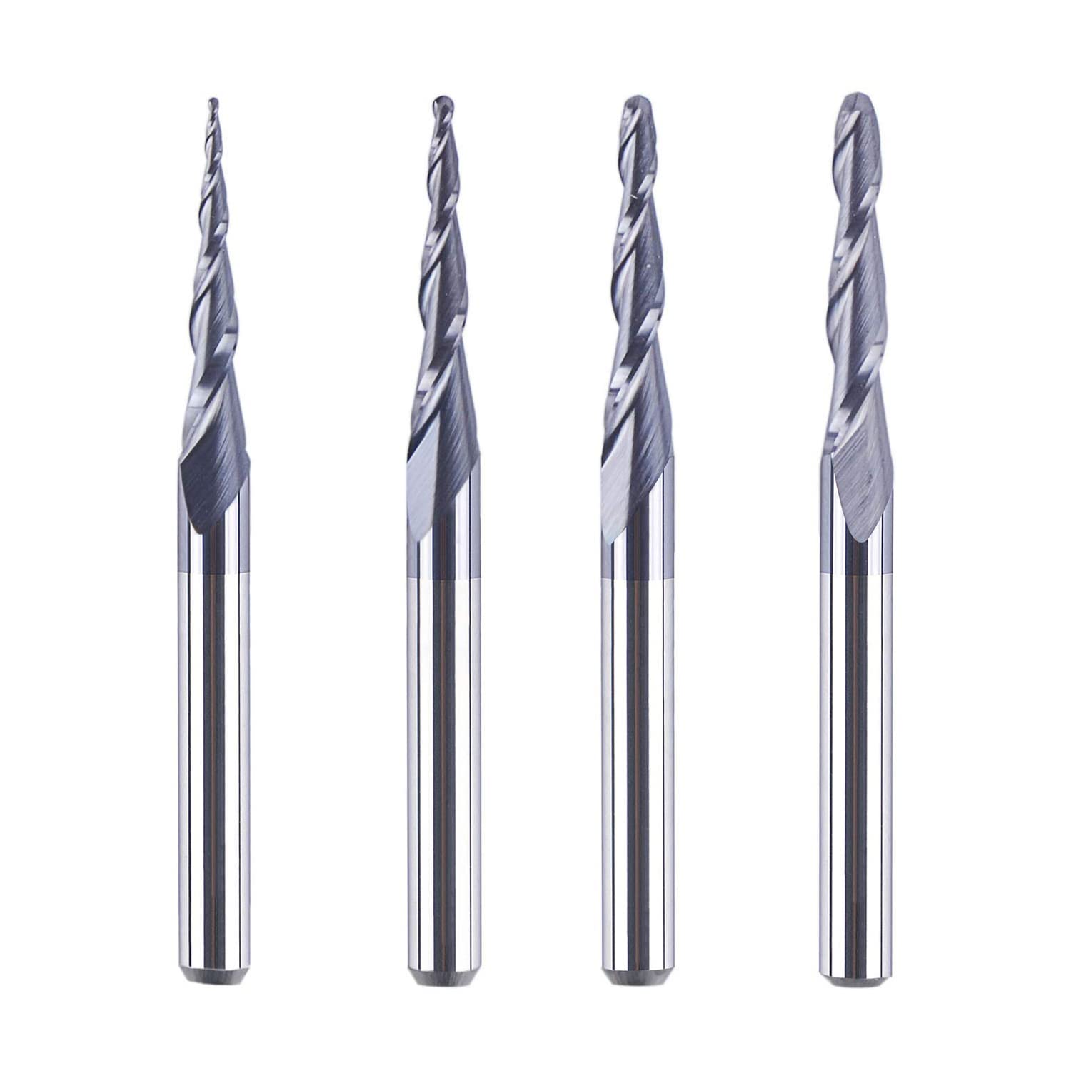 SpeTool 4 Stück 2 Flöten Kugelkopffräser mit Konischer Spitze Fräser CNC Gravierfräser R0,25mm-1,0mm