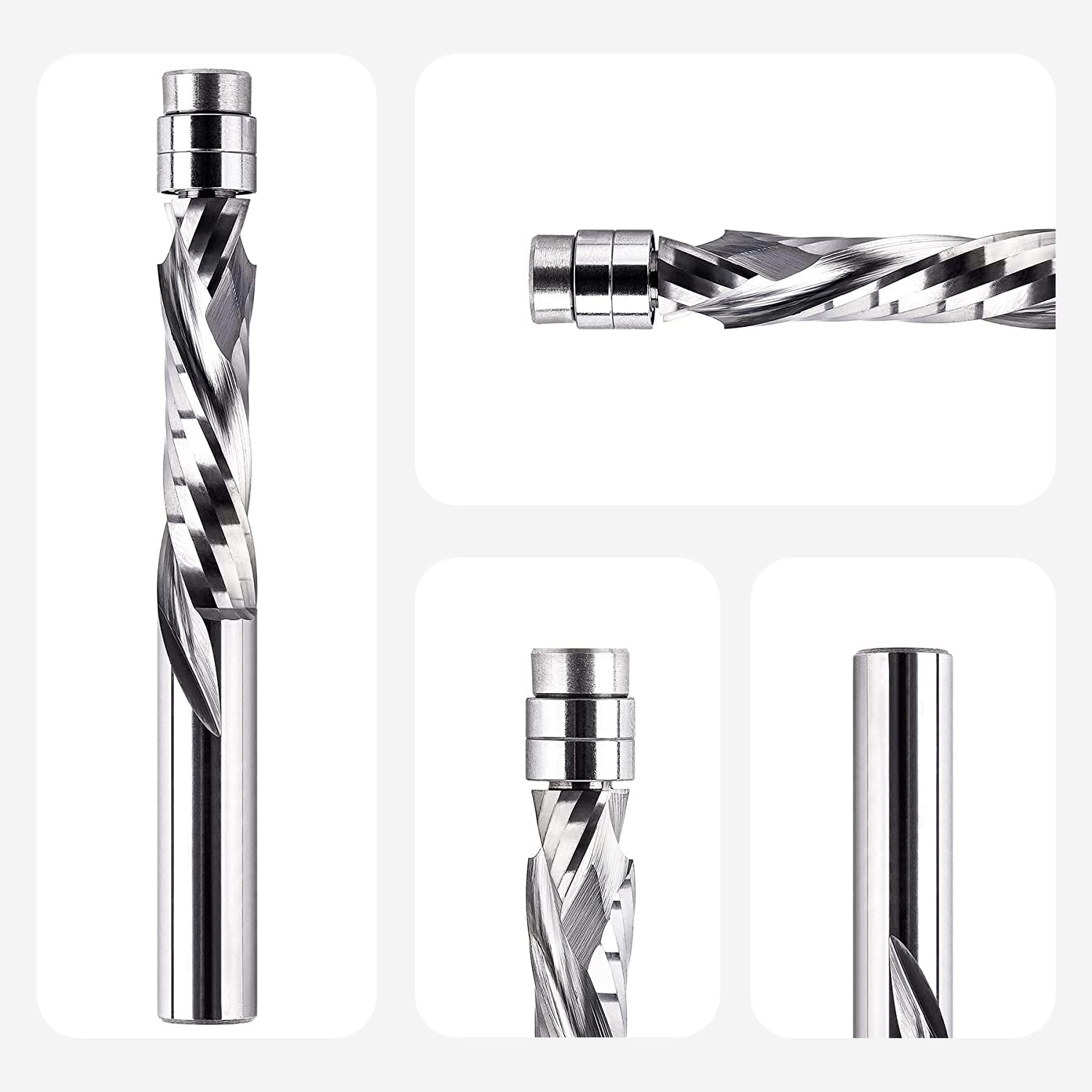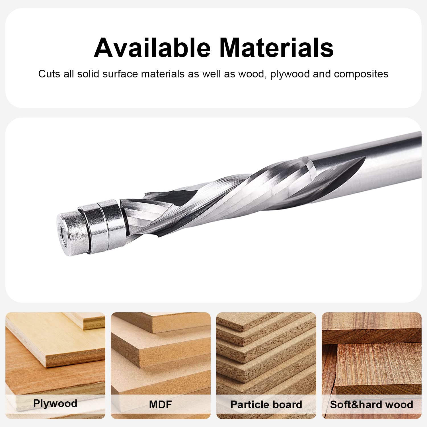 - 🔶【Kompatibilität】Der Spiral Bündigfräser eignet sich für Sperrholz, MDF, Spanplatten, Weichholz und Hartholz. Er kann auf einem Frästisch oder einer Handfräse mit einem 8 mm Spannzangenfutter verwendet werden.