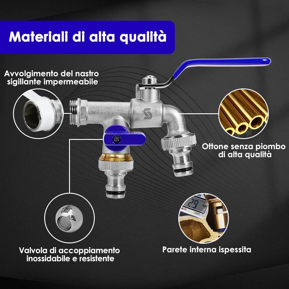 - Material:Der SPGOOD-Doppelhahn besteht aus Messing,das frost- und rostfrei ist und in Umgebungen mit hohem Wasserdruck und hohen Temperaturen verwendet werden kannMaterial:Der SPGOOD-Doppelhahn besteht aus Messing,das frost- und rostfrei ist und in