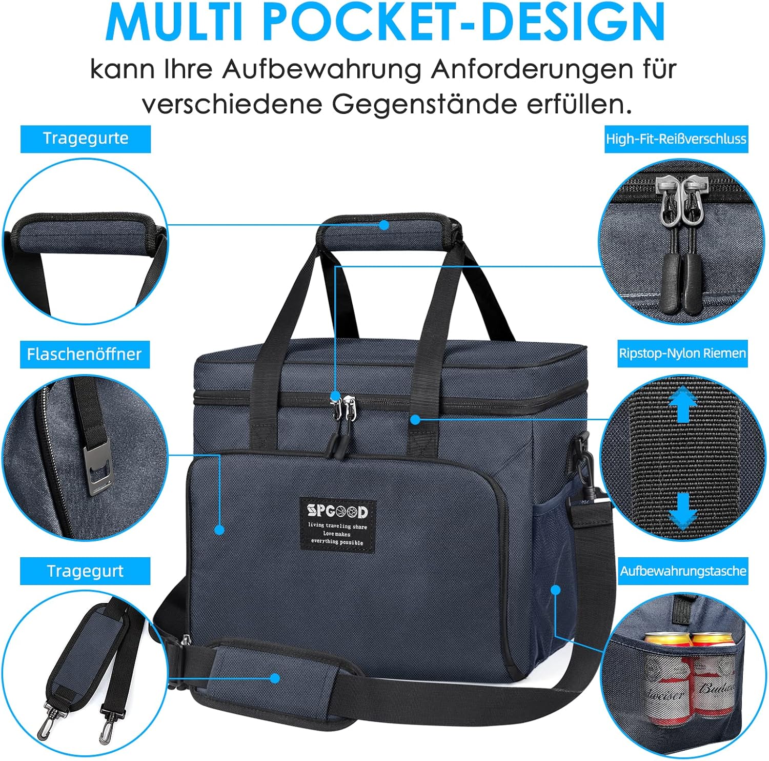 - 【Abmessungen & Kapazität】Die Gesamtabmessungen der Kühltasche sind 20 liter.Die Gesamtmasse betragen 32 x 22.5 x 29 cm.Es bietet Platz für bis zu 36 Dosen (330 ml) Getränken.