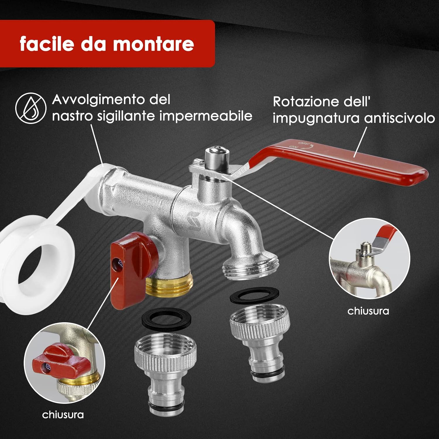 - Produktportfolio:SPGOOD Gartenwasserhahn enthält 1 Doppelhahn,4 Dichtungen, 1 Rollendichtband