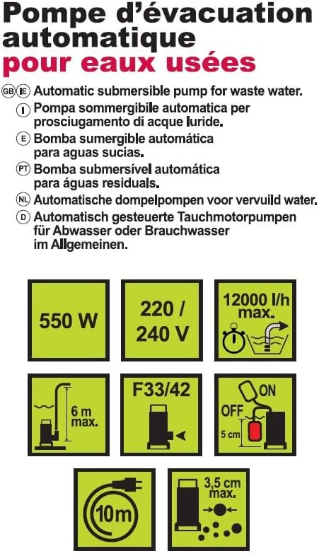 • Abluftpumpe für klares Wasser, 550 W, ideal für Vakuumkeller, Entleerung des Pools, Überlaufbrunnen verloren