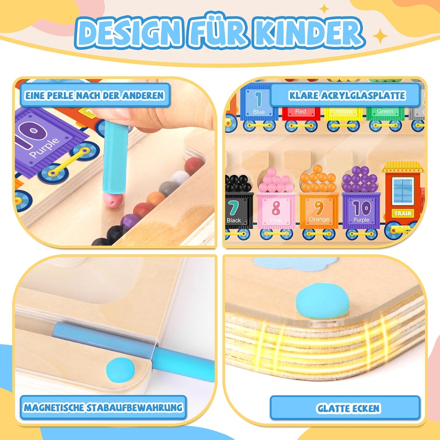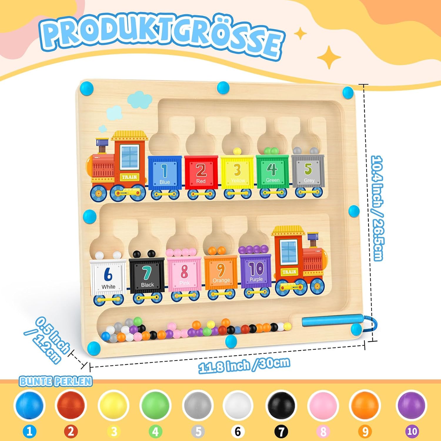 - 【Erforschen Sie das lustige Zahlen- und Farblabyrinth】Magnet spielzeug ist als Zuglabyrinth gestaltet, jeder Zug hat 5 bunte Fächer, die den Zahlen 1-10 entsprechen, Kinder können den Magnetstab benutzen, um die entsprechende Farbe und Anzahl von