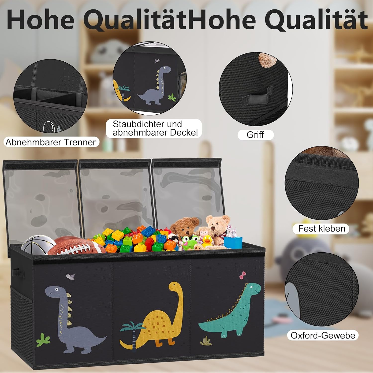- 【Abnehmbarer Deckel & Hochwertiges Material】: Sicher und langlebig Die drei Deckelelemente sind einfach abnehmbar, sodass Sie Spielzeug bequem entnehmen können. Die Aufbewahrungsbox besteht aus strapazierfähigem Oxford-Stoff und stabilem Karton,