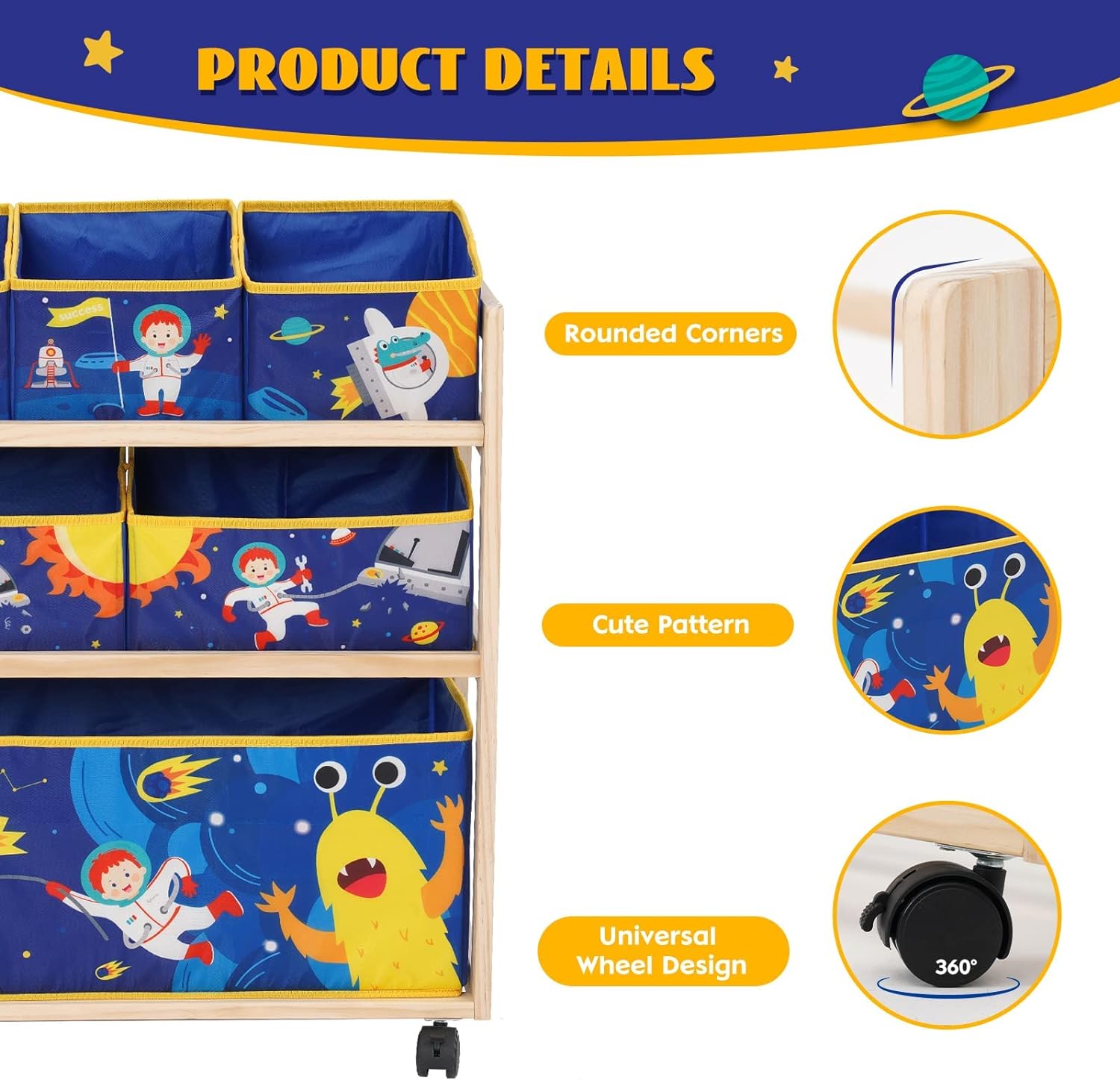 - LEISE STÜTZRÄDER: Das kinder aufbewahrungsregal auf Rädern kann leicht überall im Haus bewegt werden, da es mit 4 Holzrollen ausgestattet ist, die mit Gummistreifen umwickelt sind, die keine Geräusche machen. Das Schieberegal ist perfekt für Kinder