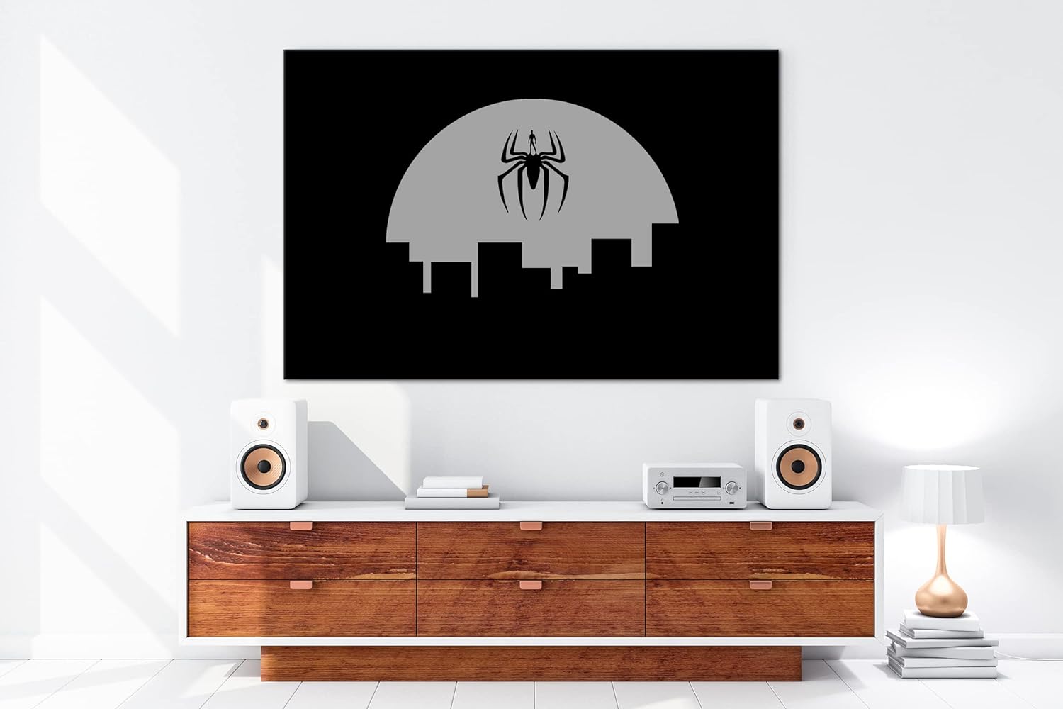 deyoli Spinnen Superheld Format: 80x60 Effekt: Schwarz&Weiss als Leinwandbild, Motiv fertig gerahmt