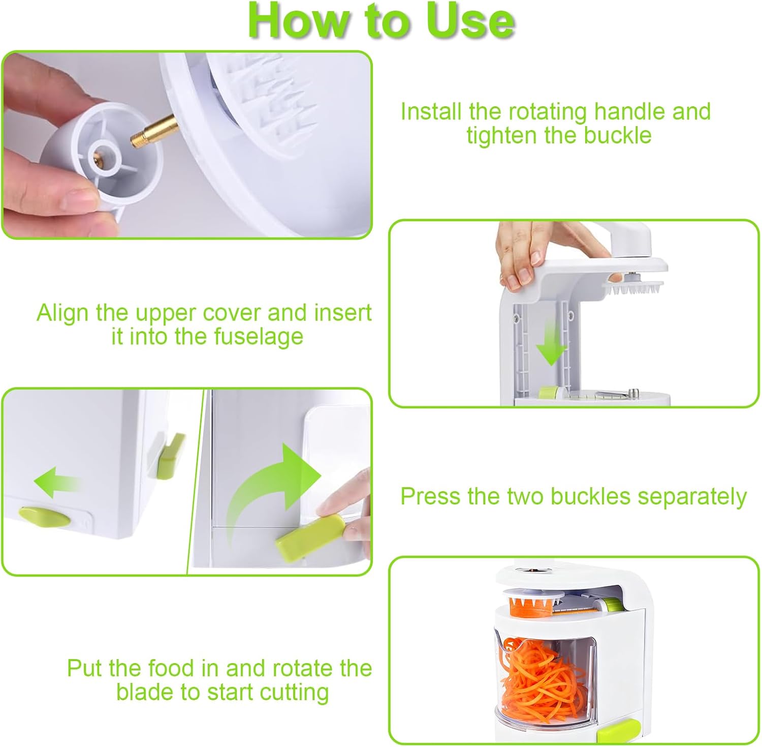 - Einfache Reinigung: Das spiralschneider gemüse abnehmbare Design ist abwaschbar oder spülmaschinenfest – das spart Zeit und Mühe.Ausserdem verfügt er über einen abnehmbaren Griff und einen Aufbewahrungsbehälter zur bequemen Aufbewahrung und ist