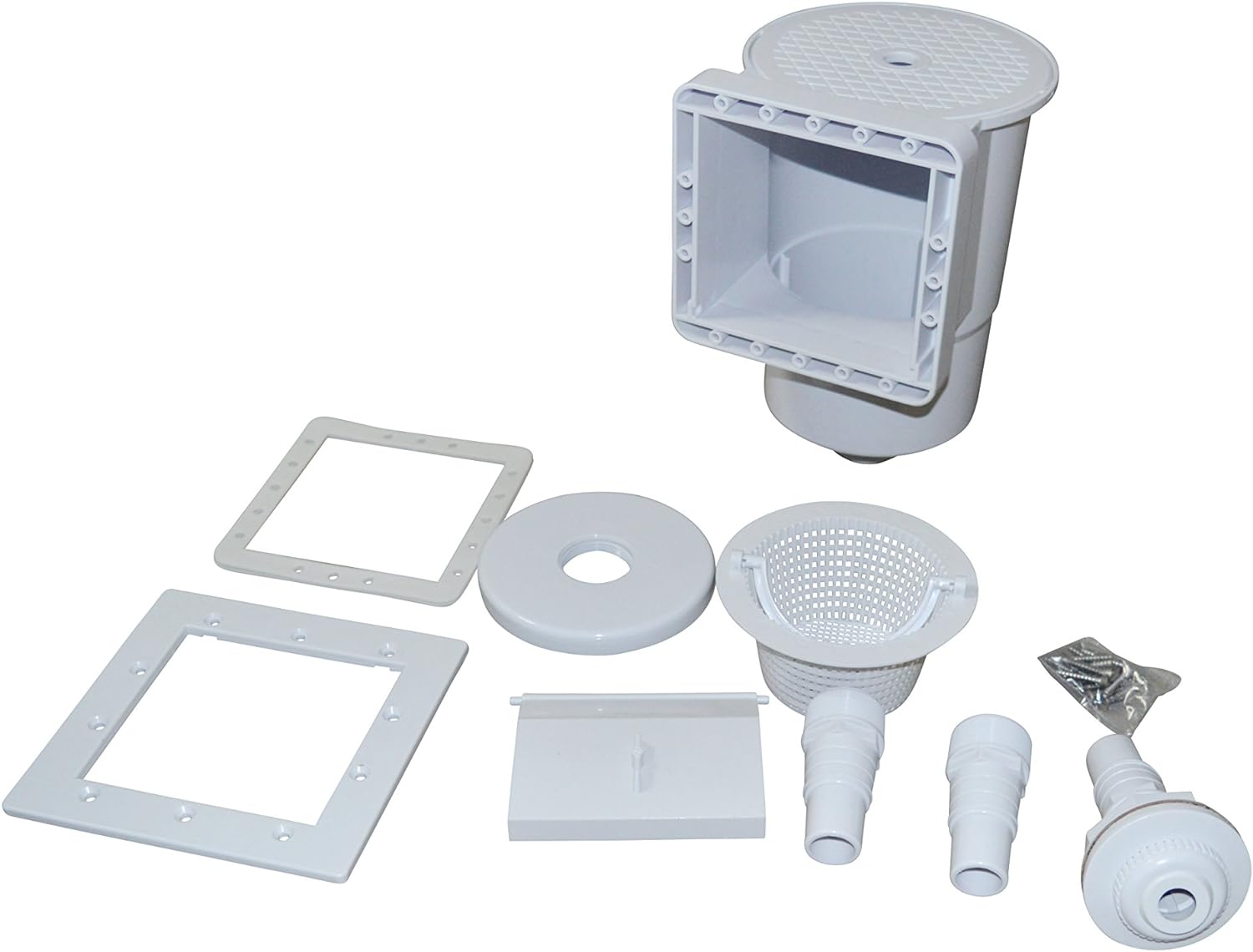- Inklusive Flanschsatz und Schrauben, Siebkorb, Skimmerwehr, Deckel, Sauplatte