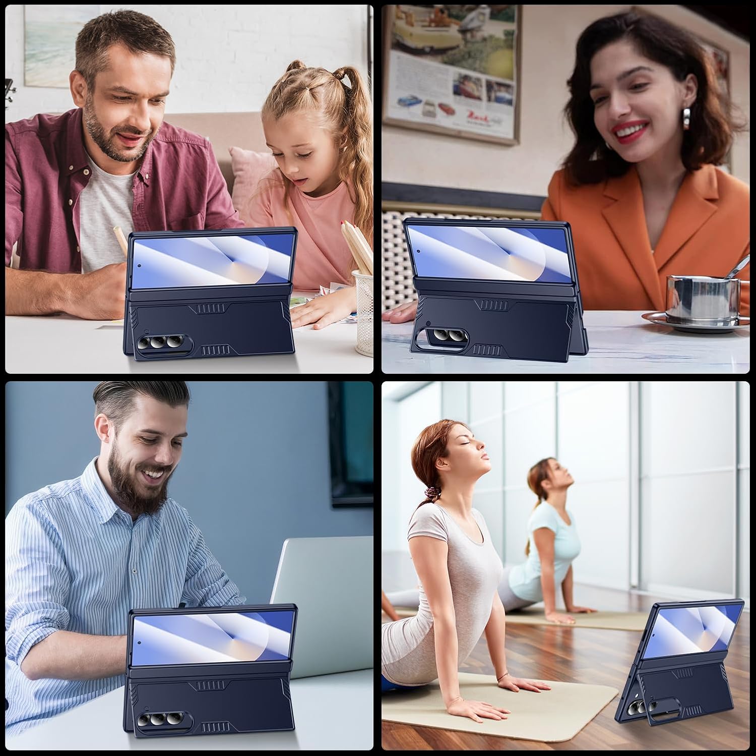 - Integrierter Hidden Kickstand: Der z fold 6 hülle standfuss wird grösser und stabiler, und kann nahtlos in die Rückseite gefaltet werden, dünn und leicht, ohne das Volumen zu erhöhen, bequem zum Ansehen von Videos oder Informationen zwischen