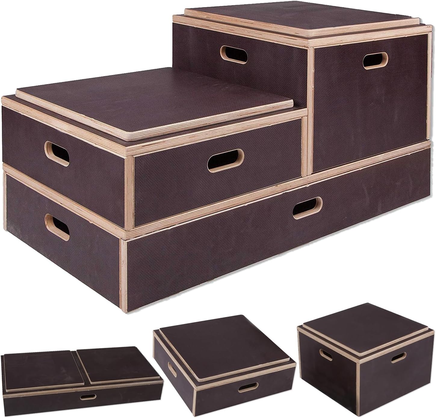 - RUTSCHFESTES MULTIPLEX-HOLZ: Unsere Plyo Jumpboxen sind hochwertig verarbeitet und bestehen aus extrem belastbaren und absolut rutschfesten "Multiplex" Birkenholz. Die Sprunghöhe ist variabel einstellbar.