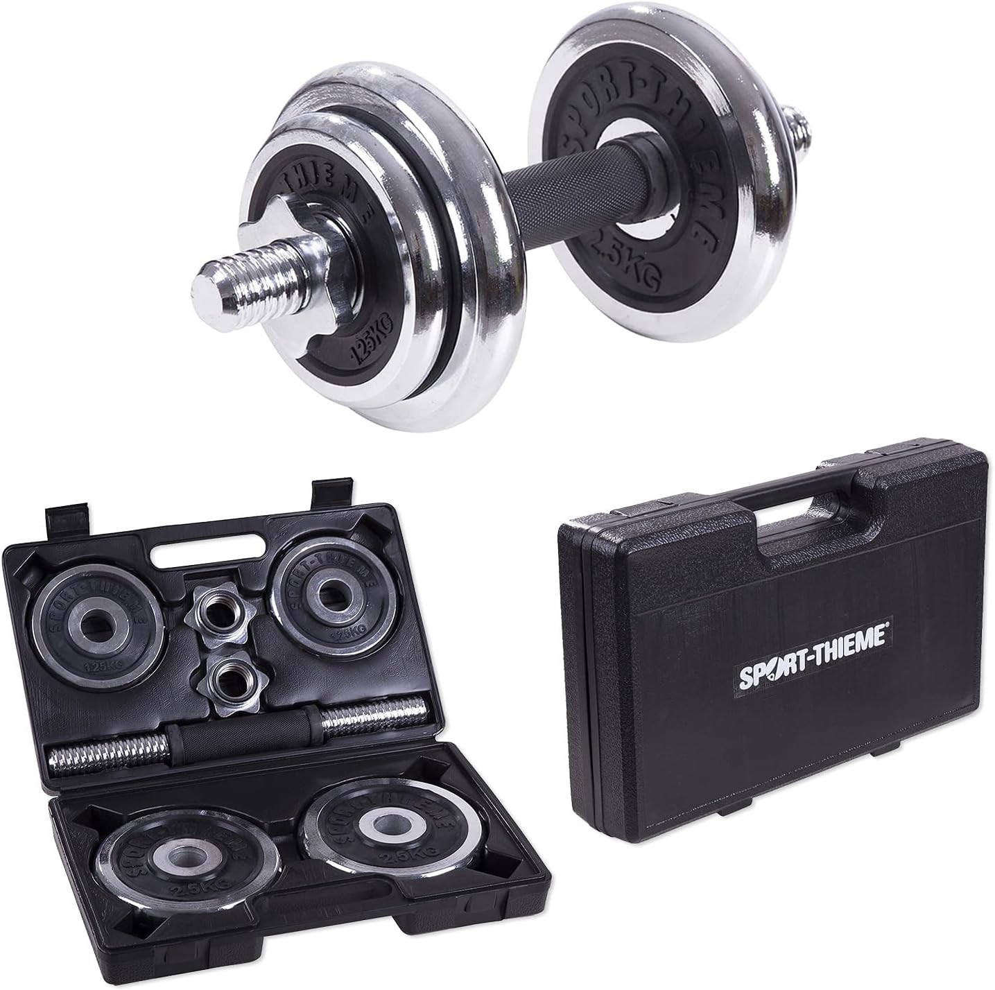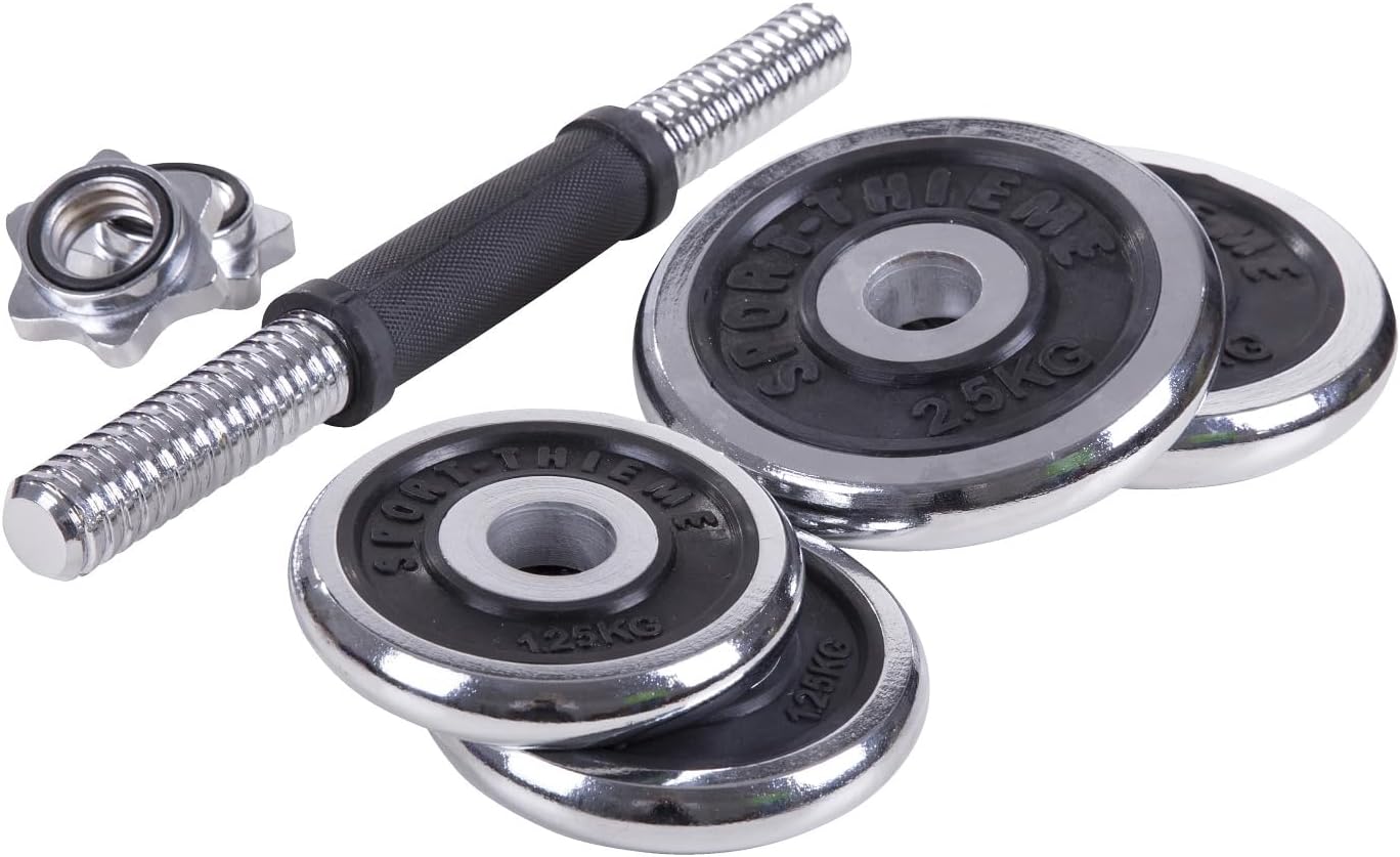- PRODUKT: Sternverschlüsse und Hantelstange aus verchromtem Stahl, Stangen Umfang ø 30 mm (Standardnorm), Grifffläche ist gummiert und am Sternverschluss sorgen für eine bessere Fixierung der Gewichtsscheiben ohne Geräusche.