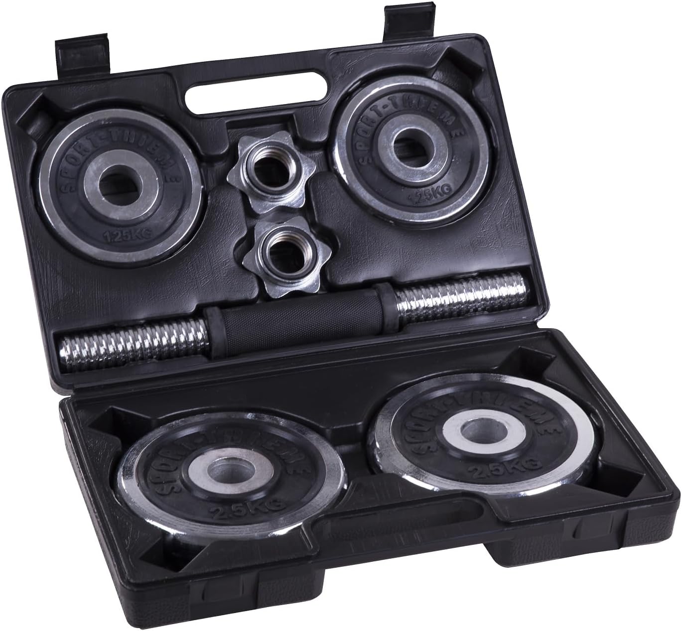- LIEFERUMFANG: In dem Koffer befinden sich 2x 1,25 kg Hantelscheiben und 2x 2,5 Hantelscheibe, sowie 1x Chrom-Hantelstange mit gummierten Griff und zwei Sternverschlüsse.
