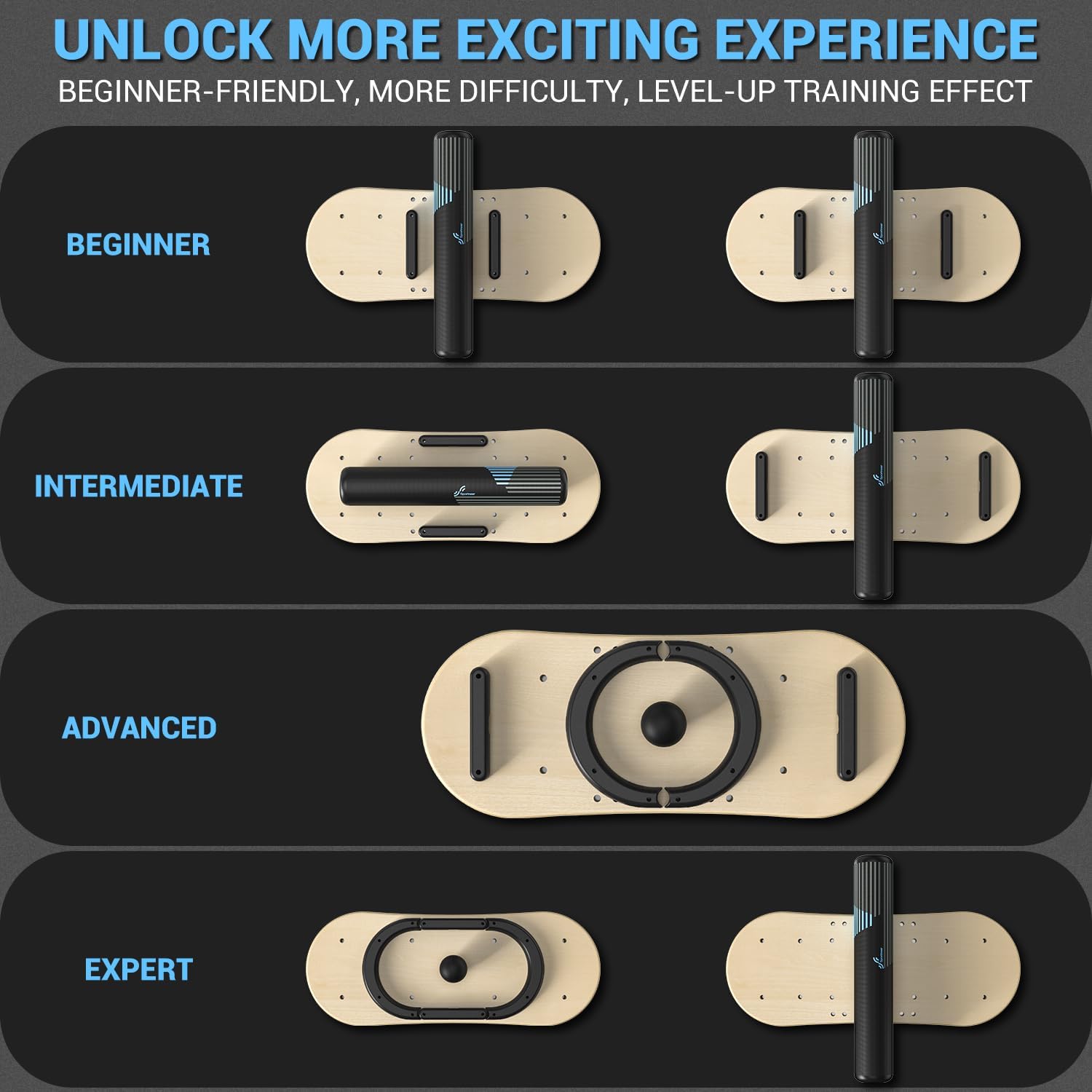 - 【2-in-1 Vielseitiges Set】Jedes Set wird mit 1 Balance-Board, 1 Rolle und 1 Ball geliefert, die 7 einzigartige Herausforderungsmodi bieten, sodass Sie sich schrittweise nach oben arbeiten können, um Ihre Kraft und Ihr Gleichgewicht zu verbessern.