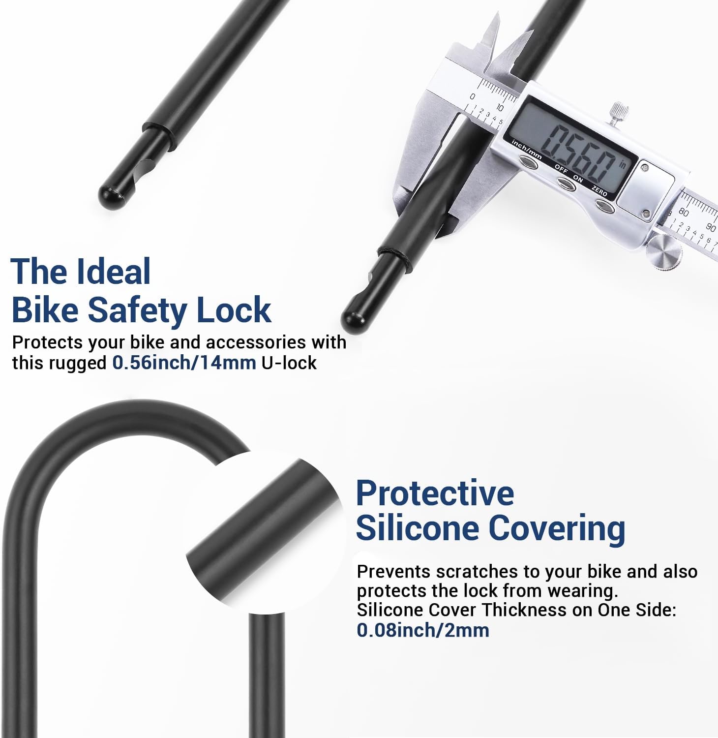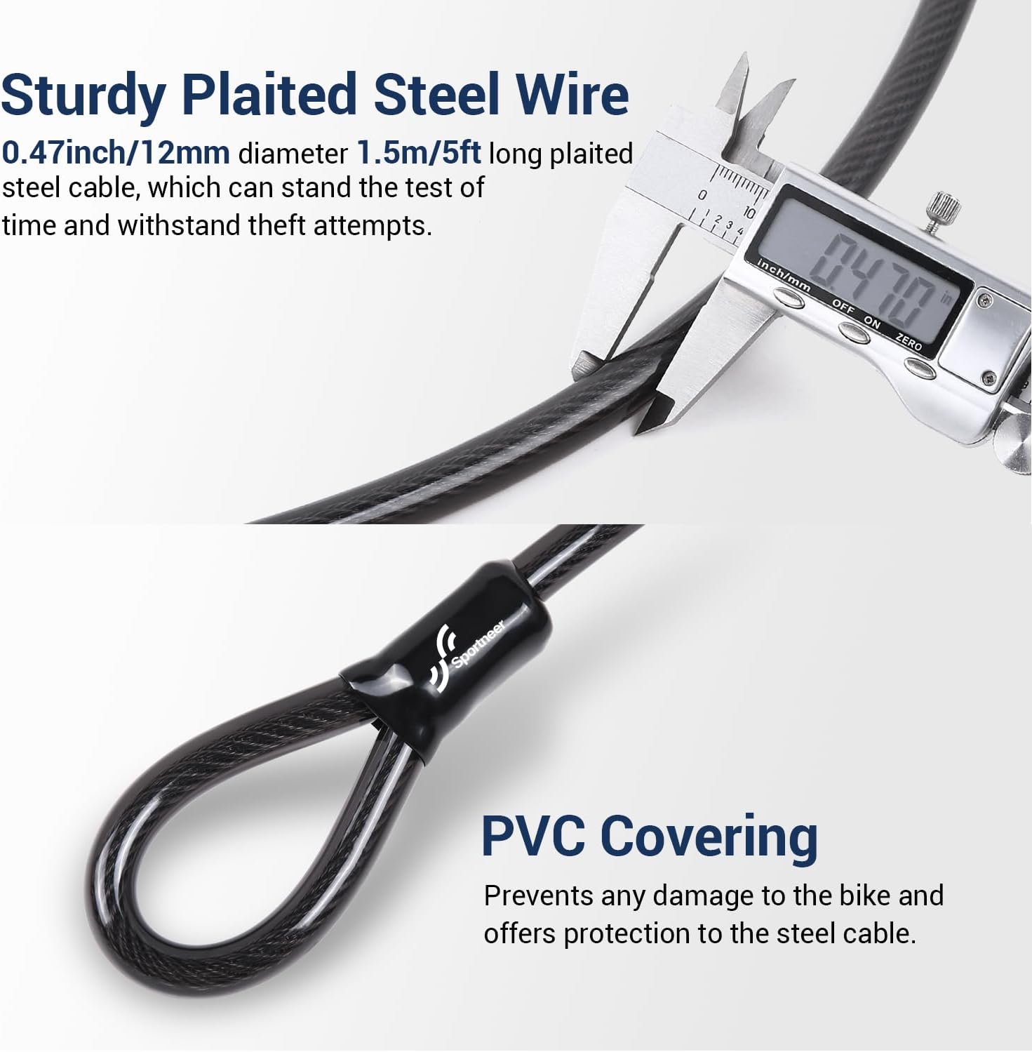 - Extra 5-Fuss Stahlkabel: Das Sportneer Fahrrad Bügelschloss wird mit einem zusätzlichen 5 Fuss doppelt geschlungenen Stahlkabel mit einer Dicke von 0,43 Zoll (einschliesslich einer PVC-Beschichtung) geliefert. Darüber hinaus kann das Kabel verwendet