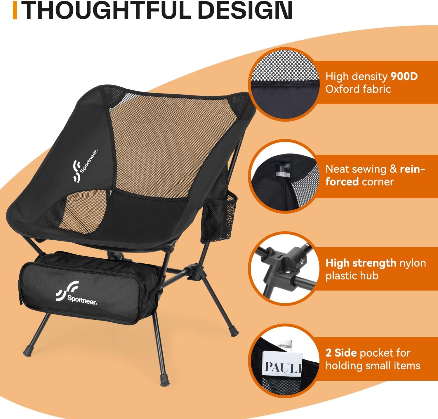 - Unübertroffene Qualität: Geben Sie sich nicht mit einem billigen leichten Klappstuhl zufrieden, der nicht zuverlässig genug ist. Der tragbare Camping-Klappstuhl von Sportneer ist aus einer hochbelastbaren 7075-Aluminiumlegierung und 900D-Oxford-Gewebe