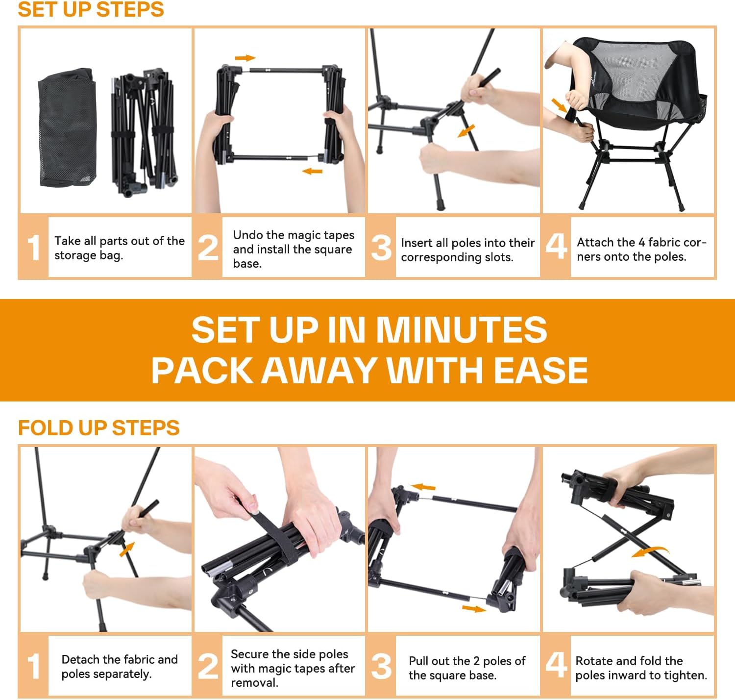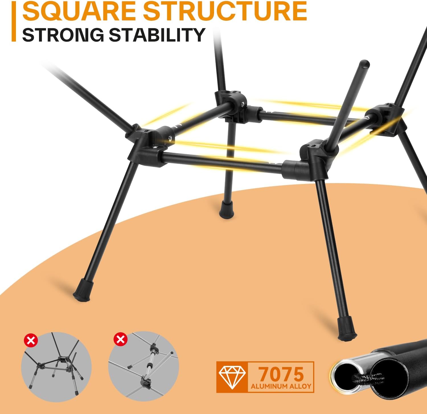 - Höhere Stabilität: Verabschieden Sie sich von einem instabilen Camping-Klappstuhl. Für ultimative Stabilität haben wir unseren Campingstuhl mit einer quadratischen Struktur und 4 Stützpunkten entworfen. Obwohl unser Stuhl aufgrund seines