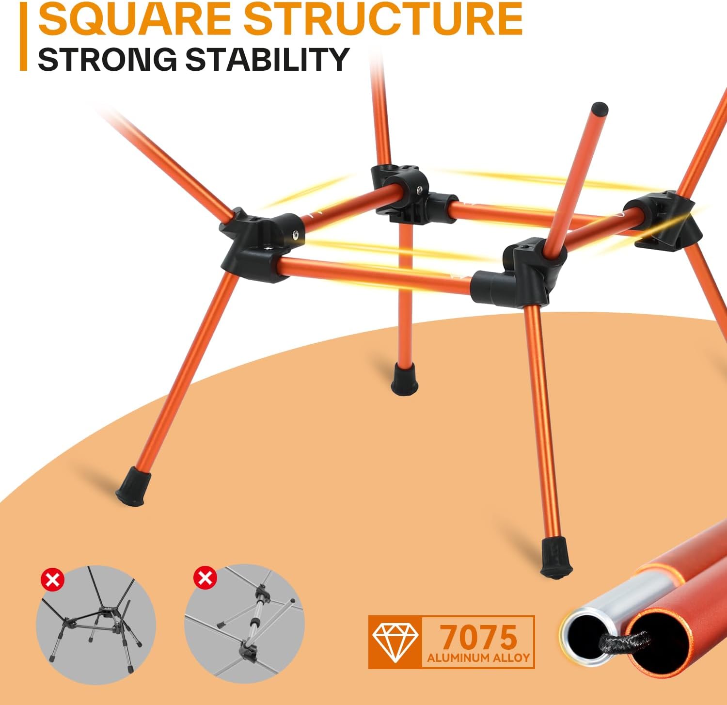 - Höhere Stabilität: Verabschieden Sie sich von einem instabilen Camping-Klappstuhl. Für ultimative Stabilität haben wir unseren Campingstuhl mit einer quadratischen Struktur und 4 Stützpunkten entworfen. Obwohl unser Stuhl aufgrund seines