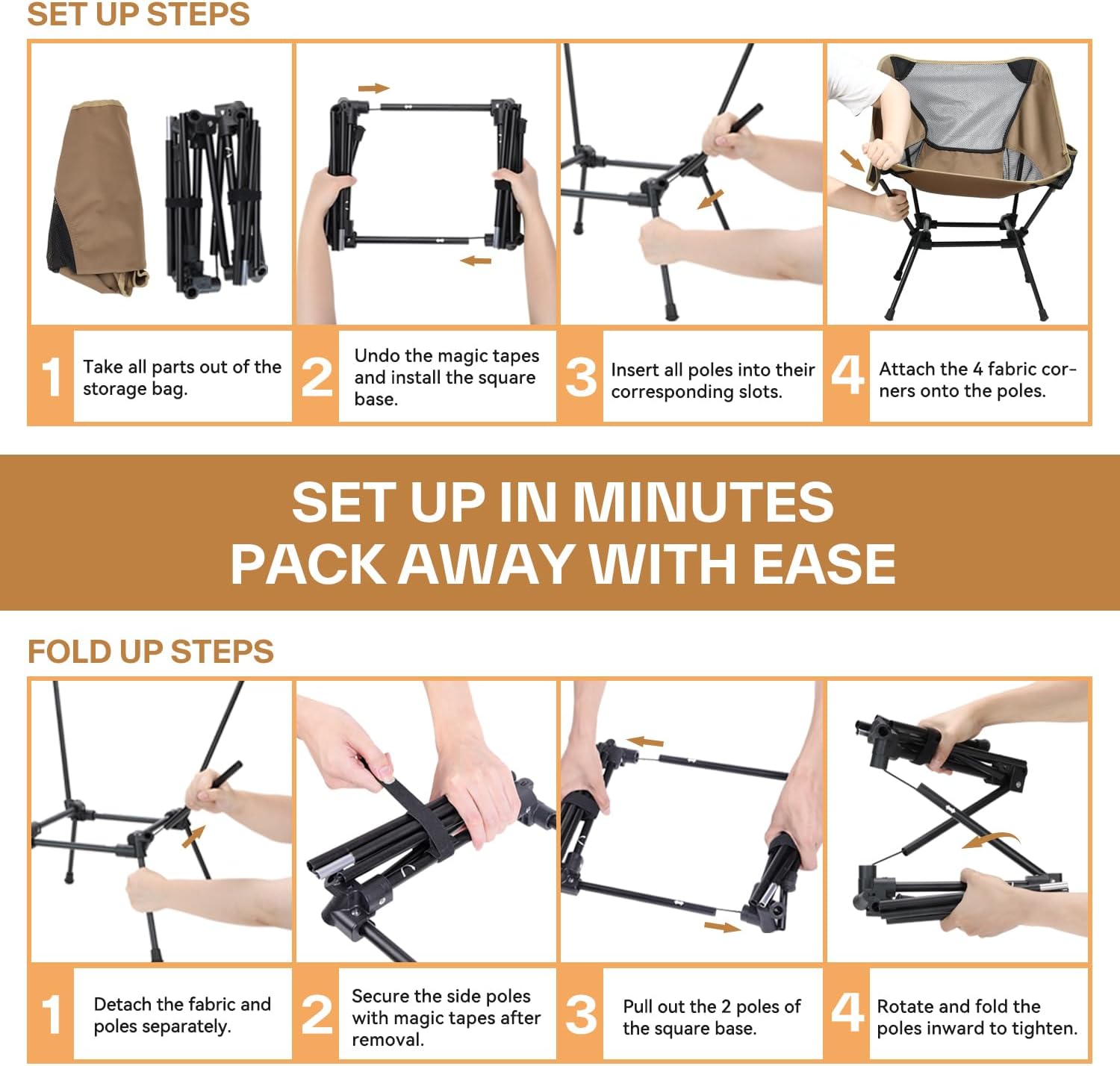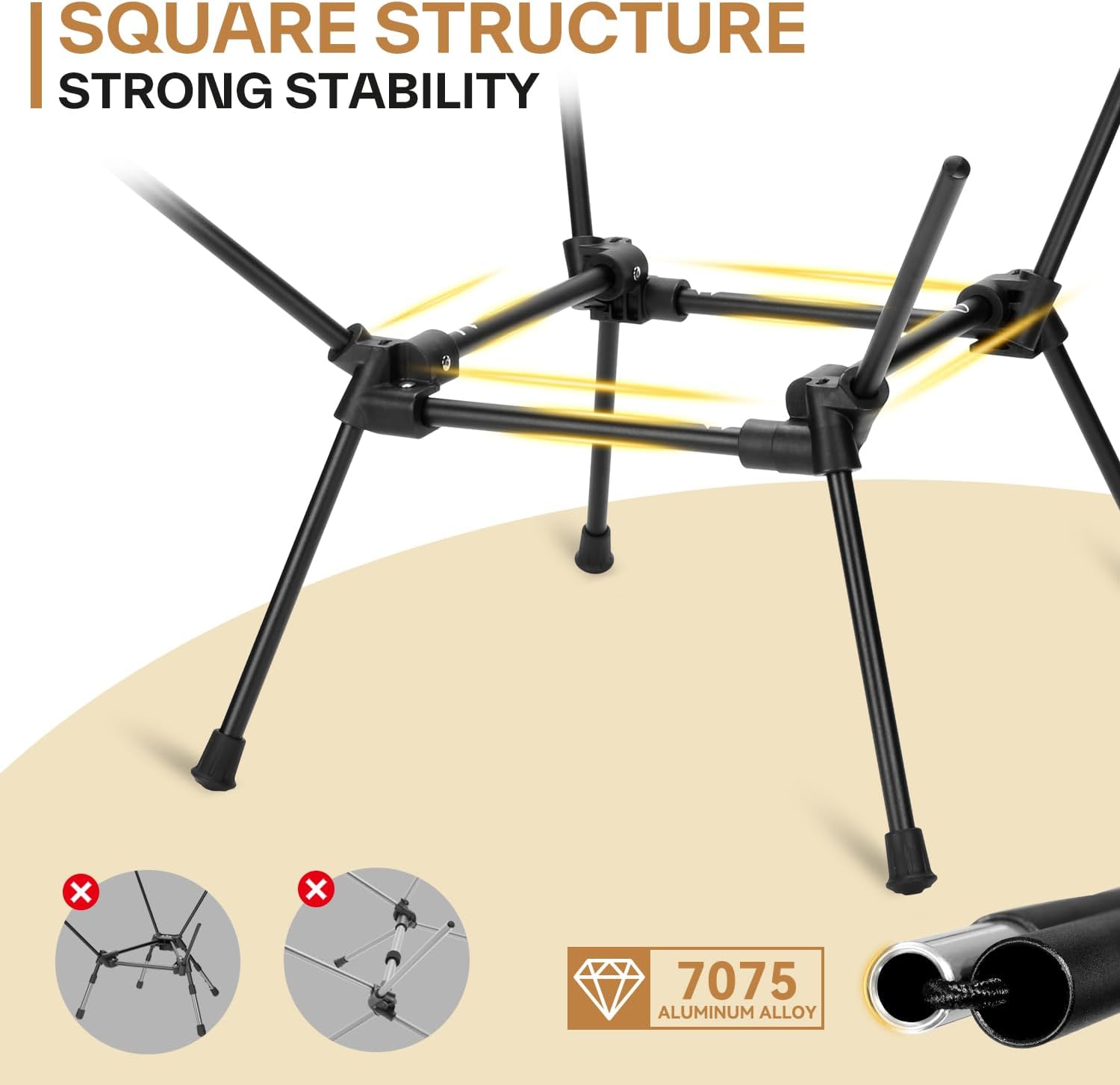 - Höhere Stabilität: Verabschieden Sie sich von einem instabilen Camping-Klappstuhl. Für ultimative Stabilität haben wir unseren Campingstuhl mit einer quadratischen Struktur und 4 Stützpunkten entworfen. Obwohl unser Stuhl aufgrund seines