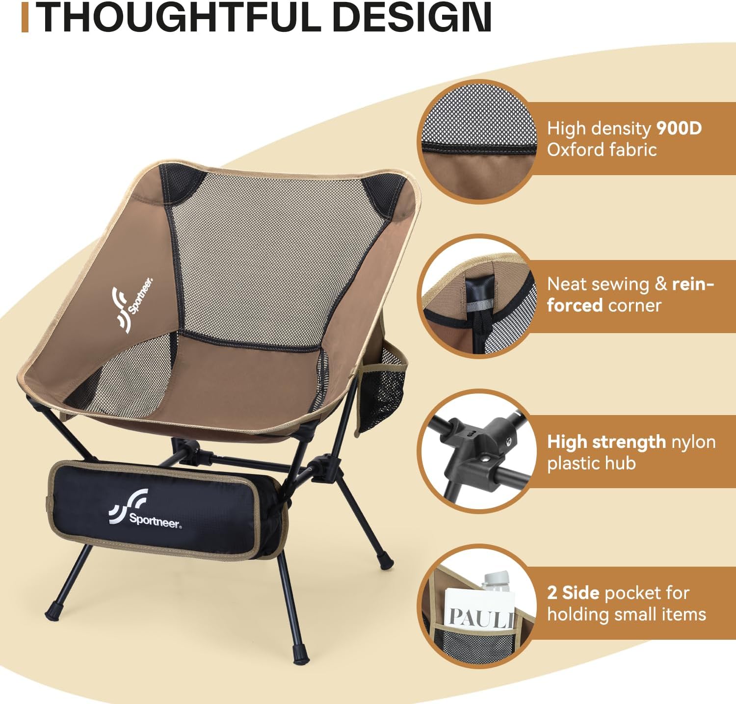 - Unübertroffene Qualität: Geben Sie sich nicht mit einem billigen leichten Klappstuhl zufrieden, der nicht zuverlässig genug ist. Der tragbare Camping-Klappstuhl von Sportneer ist aus einer hochbelastbaren 7075-Aluminiumlegierung und 900D-Oxford-Gewebe