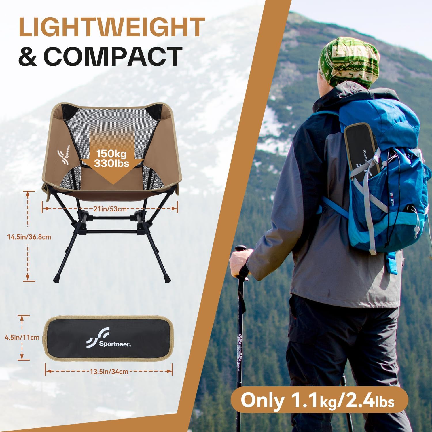 - Ultraleicht und kompakt: Wenn Sie zelten, wandern oder an den Strand gehen, sollten Sie es möglichst bequem haben! Der tragbare Outdoor-Campingstuhl von Sportneer wiegt nur 0,9 kg und kann in die Masse von ca. 35 cm x 12 cm x 11 cm gefaltet werden, so