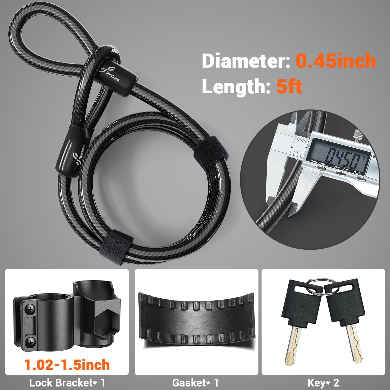 - Erstaunliche zusätzliche 5 FT Kabel:Ebenfalls im Lieferumfang enthalten ist ein doppelt geschlungenes Stahlkabel mit einer Dicke von 0,43 Zoll (einschliesslich PVC-Überzug). Sie können das Kabel verwenden, um den Rahmen, Ihren Helm, die Räder oder