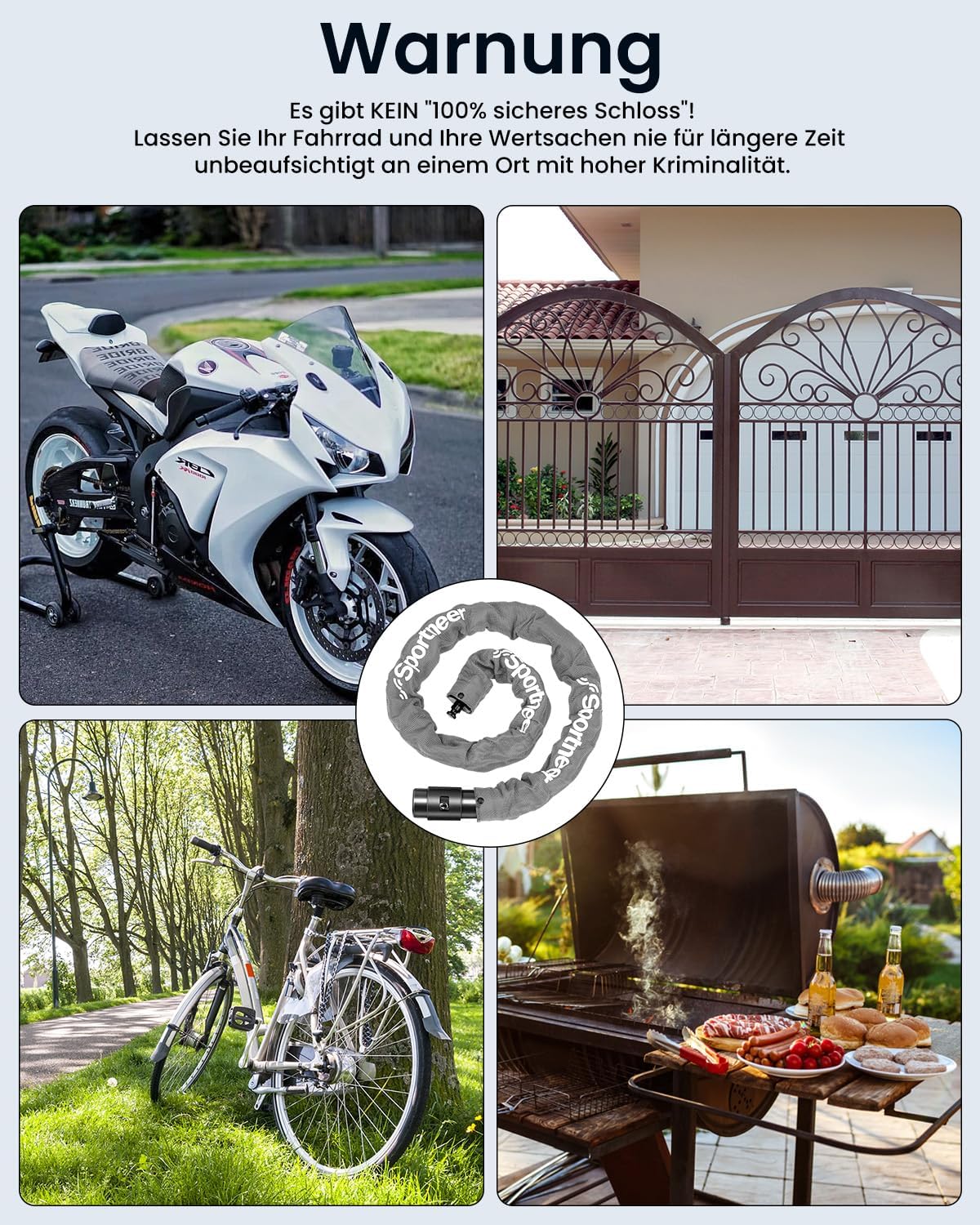 - SCHLIESST MEHR ALS FAHRRÄDER: Es ist nicht nur ein Fahrradschloss, sondern kann alles Mögliche abschliessen! Sichern Sie Ihre Tore, Türen, Motorroller, Motorräder, Generatoren und sogar Sportgeräte!