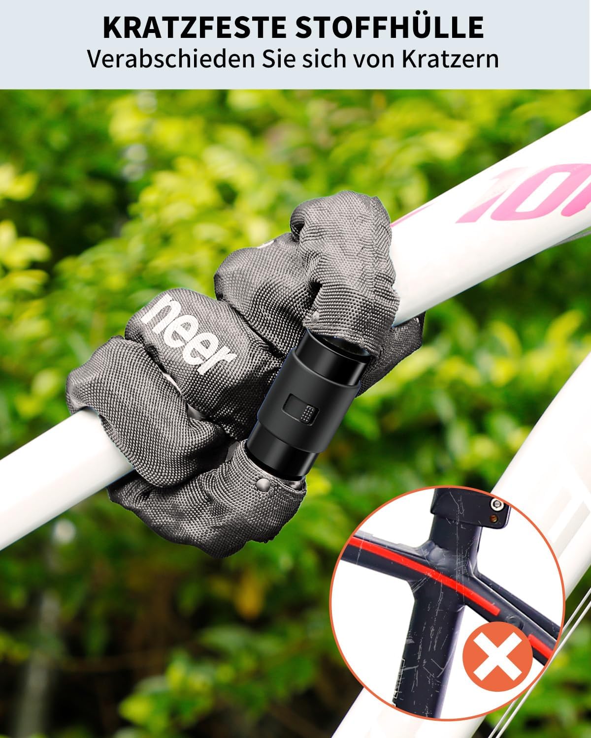 - WEAR-RESISTANT PROTECTIVE COVER: Halten Sie die Fahrradkette für das Schloss mit Schlüssel in gutem Zustand sowie Ihr Fahrrad dank des Vliesstoffs, der korrosions- und abriebfest ist und Kratzer und Absplitterungen an Ihrem Fahrradrahmen verhindert.
