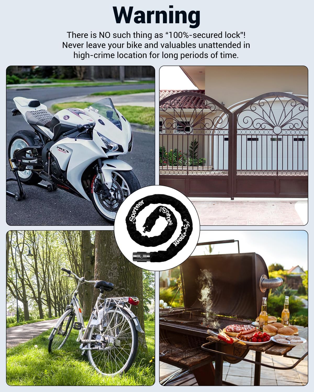 - SCHLIESST MEHR ALS FAHRRÄDER: Es ist nicht nur ein Fahrradschloss, sondern kann alles Mögliche abschliessen! Sichern Sie Ihre Tore, Türen, Motorroller, Motorräder, Generatoren und sogar Sportgeräte!